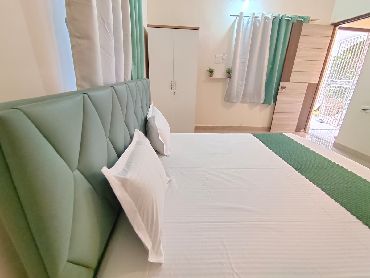 Nuestro espacioso Airbnb de 2 dormitorios y 2 baños se encuentra en medio del santuario tropical de Goa. Relájate en la acogedora sala de estar, prepara deliciosas comidas en la cocina totalmente equipada. Nuestras habitaciones con aire acondicionado prometen un sueño tranquilo con sábanas suaves, dormitorios cómodos y con aire acondicionado. Entra en tu balcón privado para disfrutar de las vistas panorámicas de la exuberante vegetación. Con la playa a 5 minutos a pie, desde cenas junto a la playa hasta puestas de sol perfectas, te espera tu escapada perfecta en Goa. ¡Reserva ahora a un precio de robo!