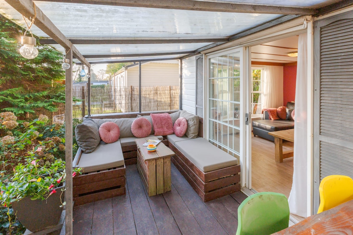 Una cabaña de troncos única con interior moderno y puertas dobles de cristal con vistas al patio y a la sala de estar. Interior bien diseñado con todos los elementos esenciales y muchos de los no esenciales, incluida una cocina moderna y un baño. Estamos orgullosos de ofrecer a nuestros huéspedes el mejor café de comercio justo que jamás hayan probado. La Siemens EQ6 hará todo el expreso, capuchino y latte macchiato que quieras. Céntrico en los Países Bajos: a 20 minutos en autobús de Utrecht. A menos de 45 minutos en coche de Ámsterdam.