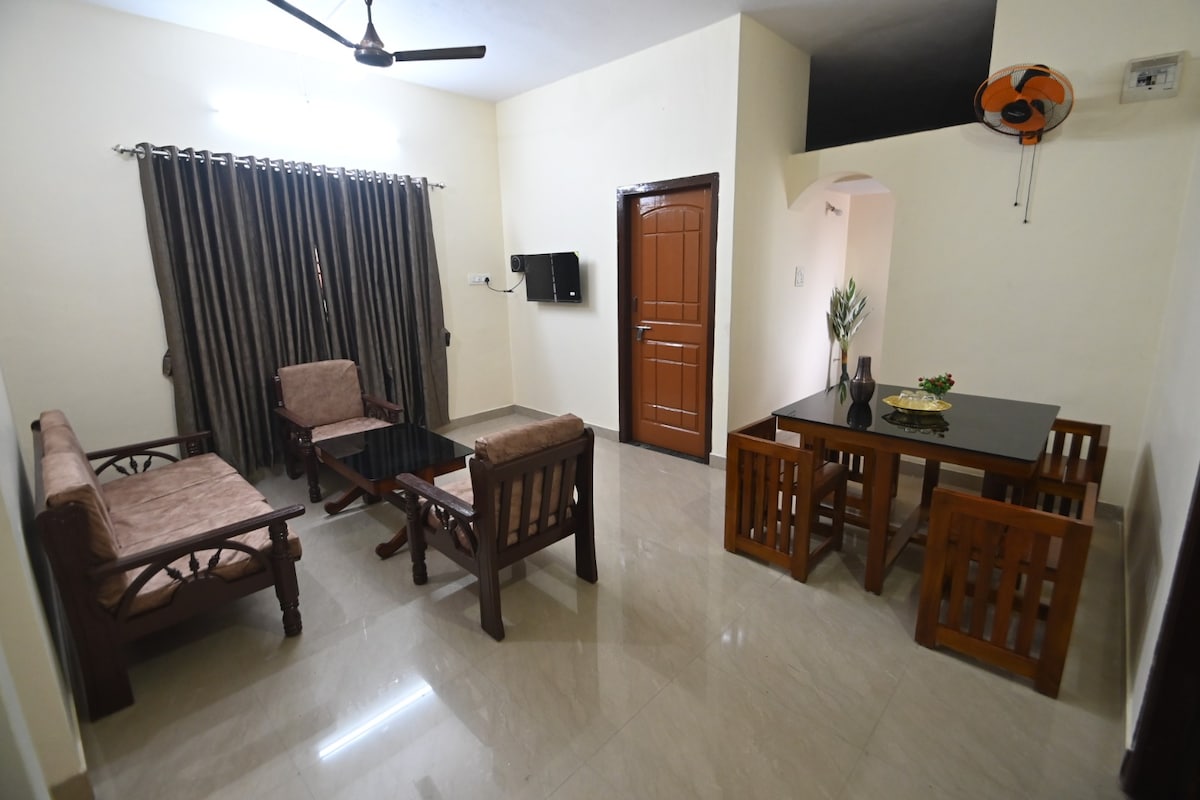 ¡Descubre la escapada costera perfecta! Este departamento de 2BHK está a solo 2 minutos del puente Sadashivgad, a 5 minutos de Karwar Beach y a 10 minutos de la frontera de Goa. También ofrece fácil acceso a Palolem (35 minutos), Agonda (40 minutos) y Galgibaga (30 minutos). Con una amplia sala de estar y comedor, una cocina totalmente equipada y una cama tamaño king, es perfecto para familias, parejas, viajeros de negocios y mochileros. Disfruta de destinos pintorescos y comodidad inigualable. ¡Reserva ahora!