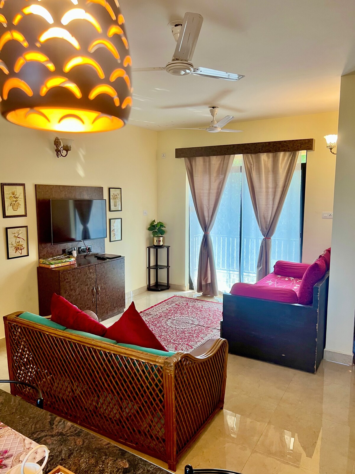 Welcome to our cozy and modern 2BHK house, perfect for families or groups of friends looking for a comfortable and relaxing stay. This spacious house features two comfortable bedrooms with Queen mattress, living room, and a functional kitchen, making it ideal for a memorable vacation. Our house is equipped with all the amenities you need for a comfortable stay, including Wi-Fi, TV with Jio and OTT, 6 hrs Power backup, Air cooler, Iron box, Washing Machine, Hair Dryer etc