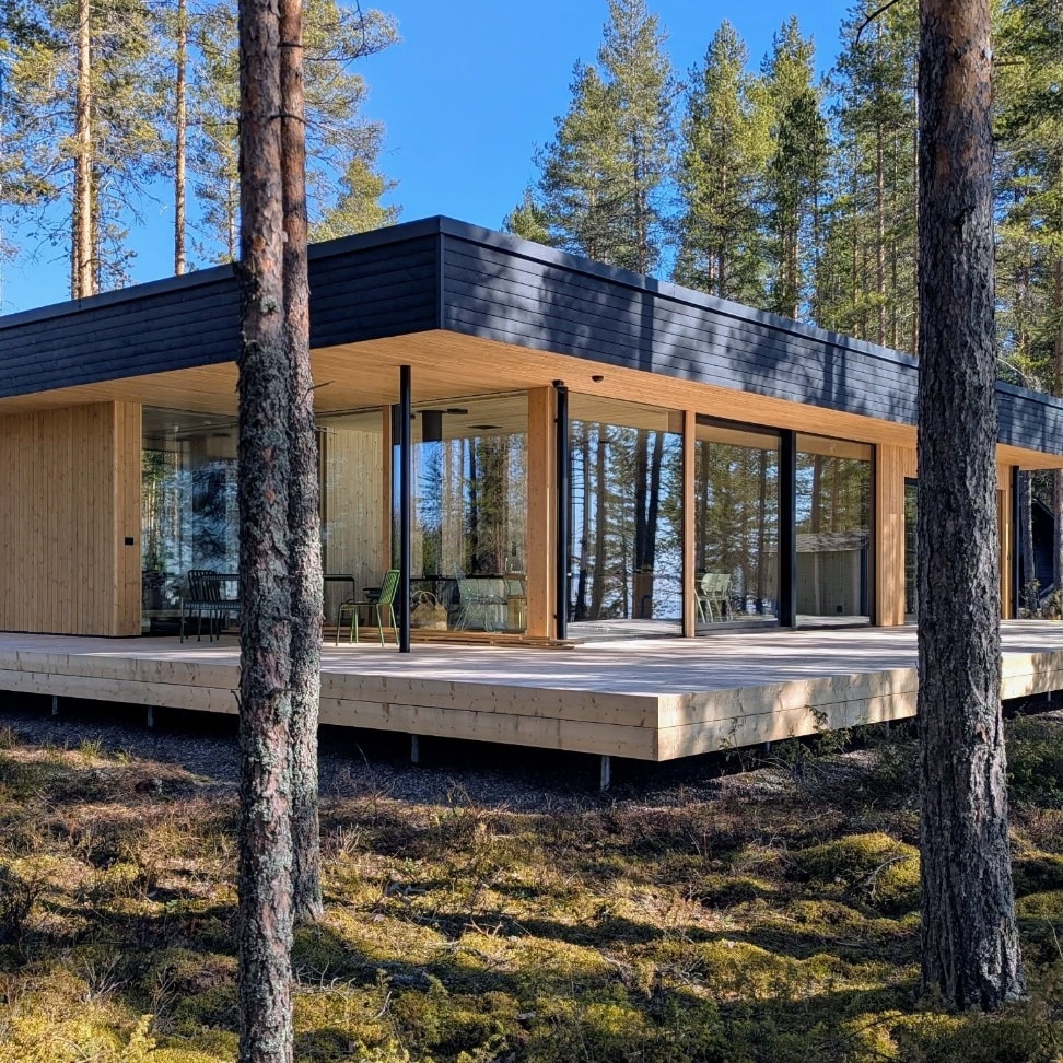 Un chalet rojo es la casa finlandesa más tradicional, pero la mezclamos con la modernidad de las ventanas panorámicas, por lo que podrías tener una inmensa vista a la naturaleza desde tu propia cama o desde la sala de estar. Date un paseo por el maravilloso paisaje de Rokua UNESCO a la vuelta de la esquina y relájate en tu sauna privada. Desayuno y comidas de media pensión disponibles en nuestro Panoramic Bistro. Pregúntanos. Actividades y experiencias también disponibles en Nature Dream Days ¡Te damos la bienvenida! No se permiten visitas ni fiestas.