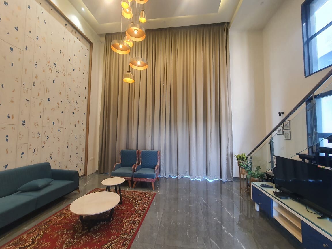 Modern and spacious 3 BHK apartment featuring 2 master bedrooms, 3 bathrooms, and fully air-conditioned rooms. Enjoy entertainment on a 65-inch smart TV and relax in a comfortable, well-maintained home ideal for families or professionals. Designed for convenience and comfort with ample space and modern amenities. The apartment offers a peaceful and secure environment with premium furnishings. A fully equipped kitchen allows you to prepare meals with ease.