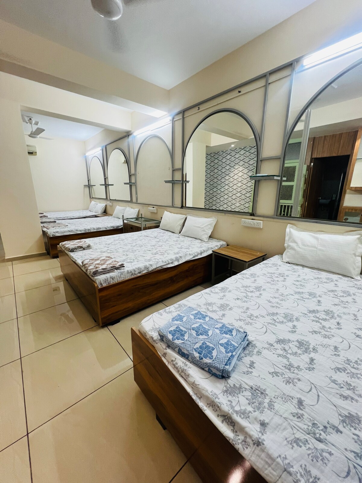 This spacious homestay is located in a central location in Rajkot, making it the perfect base for exploring the city. The home is well-suited for large families, with three bedrooms and two large bathrooms. There is also parking on the premises. The property has caretakers on site 24/7 who help clean and maintain security. There is also a friendly family dog named Harley who loves to meet new people. The home is fully furnished and equipped including a kitchen, living room, and dining area.