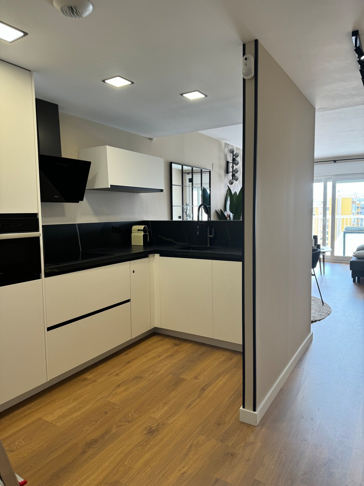 Apartamentos muy luminosos con vista a plaza Notario Mas, de 32m2, con cama doble de 180, cocina y baño. Este apartamentos está diseñado y equipado tecnológicamente para garantizar su bienestar, disponiendo de climatización, persianas motorizadas, televisor Smart TV de 43”, Wi-Fi, armarios con iluminación interior, plancha y caja fuerte. La cocina dispone de vitrocerámica, horno microondas, nevera, cafetera Nespresso, lavadora, menaje de cocina y elementos de limpieza.