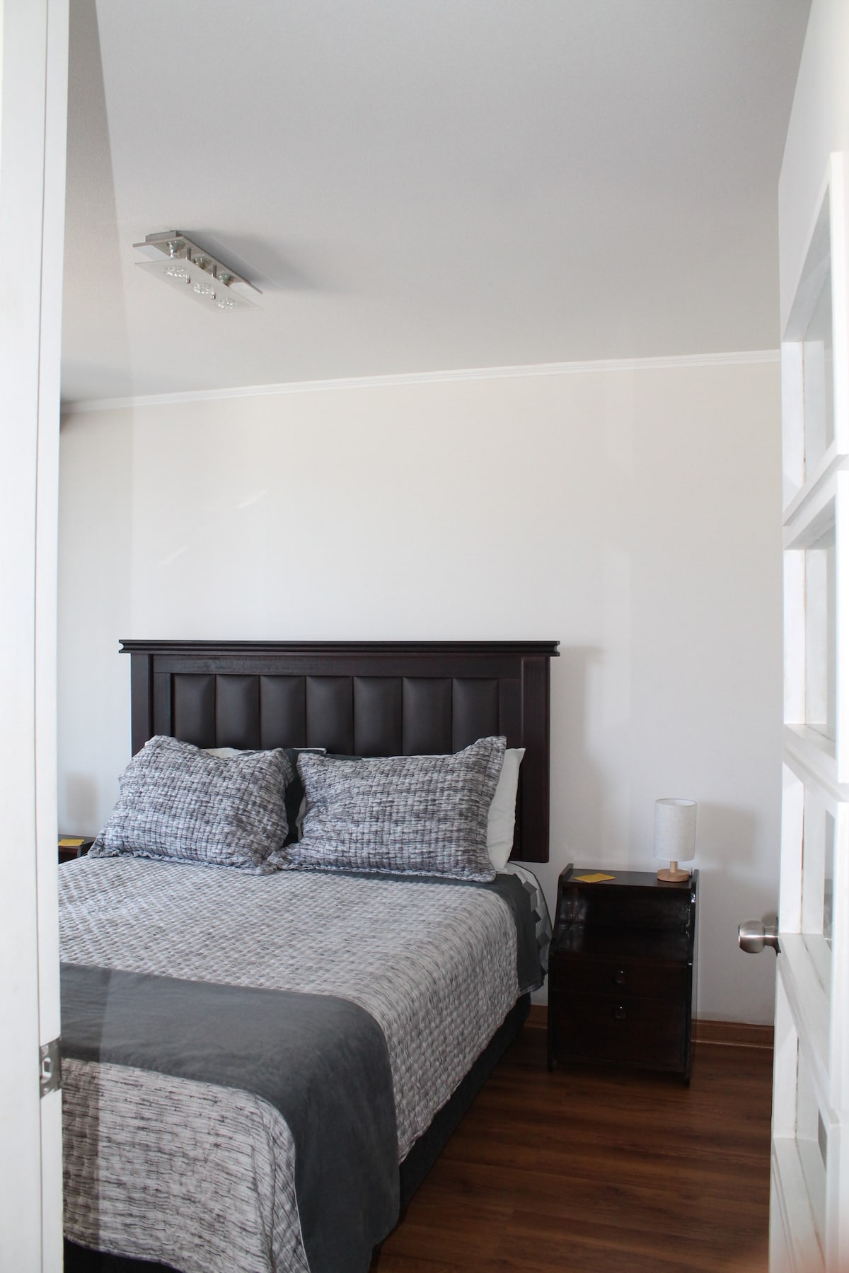 Disfruta de la sencillez de este alojamiento tranquilo y céntrico. Cada rincón está decorado con mucho amor y dedicación para que puedan disfrutar de esta estadia . El condominio es grande cuenta con ciclovías , muchas áreas verdes , piscinas , Quinchos , cine , multi cancha, gimnasio y juegos para los pequeños . Esta ubicado a 2 min. del mcdonals A 5 min del supermercado acuenta y tottus a 7 min del unimarc e lider. 10 min. en auto de la playa y mall. Locomoción a una cuadra. No te arrepentirás
