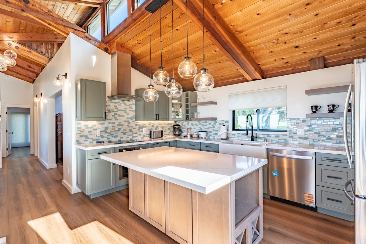 Escápate a la privacidad de la Mendocino Tree House, un refugio octogonal construido alrededor de una secuoya de 80 años con un spa al aire libre de lujo completo. La casa de 2 dormitorios y 2 baños combina el estilo moderno con el esplendor natural. Relájate en la amplia terraza envolvente o relájate junto a la fogata en medio de las secuoyas. Disfruta bajo las estrellas en el oasis de spa al aire libre, con jacuzzi, sauna de leña, bañera con patas y ducha. Sumérgete en la comodidad, donde cada detalle te invita a abrazar la paz y la serenidad.