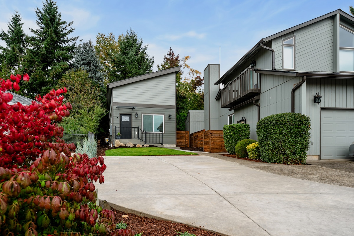Construida recientemente en el 22, esta casa de huéspedes bellamente diseñada y todo lo que contiene es nuevo, por lo que puedes disfrutar de todas las comodidades de un hogar. El techo abovedado de 11 pies, la cocina de tamaño completo y la abundancia de luz natural son solo algunas de las cosas que hacen que esta casa de 565 pies cuadrados y un dormitorio parezca más grande de lo que es. Perfectamente ubicado a 1,8 millas del centro de Vancouver y a 15 minutos del aeropuerto PDX y Portland Oregón; es el alojamiento perfecto para tu estancia. *Limpieza y desinfección profesional entre estancias*