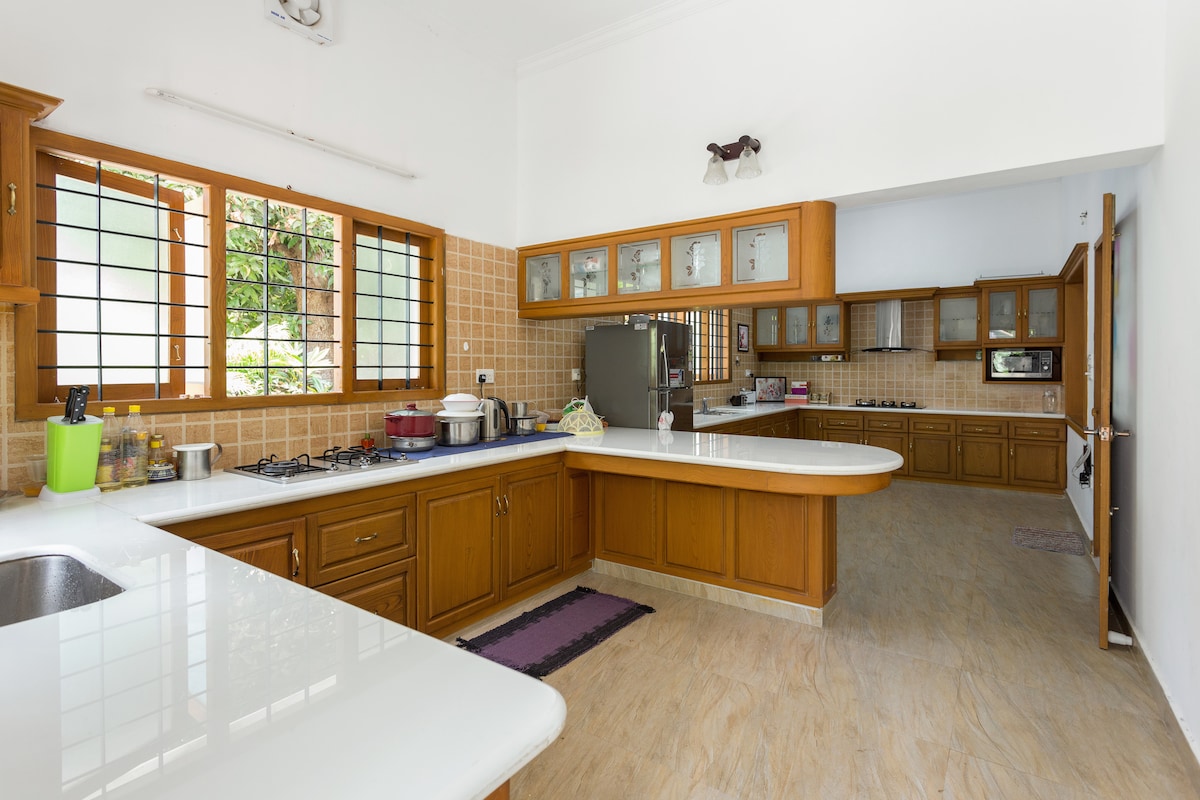 Riverdale Mansion is only a 25 minute drive away from Cochin International Airport. Perfect your stay in Kerala with your very own 2 storey, 3 bedroom architectural marvel suitable for families looking for a spacious and serene location to spend their vacation. Amenities Airconditioner Wifi Fridge Microwave Gas Stove Water Purifier and Dispenser Water Heater Iron 2 x bicycles Lightning Arrester
