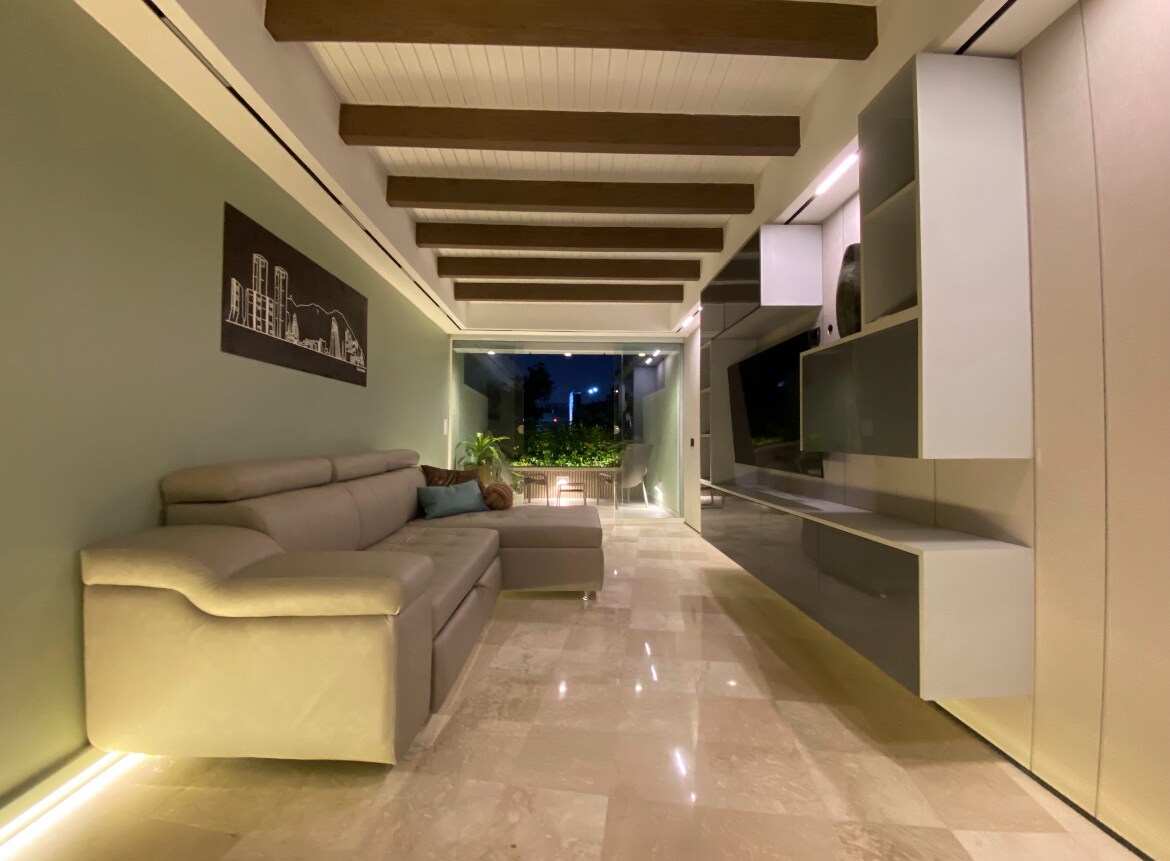 Este moderno apartamento cuenta con 1 habitación, 1 baño, 1 puesto de estacionamiento privado y gratuito, internet de alta velocidad, pozo de agua y tanque, TV, aire acondicionado y todos los equipos e implementos de cocina. La ubicación es insuperable, ya que tiene cerca variedad de restaurantes, farmacias, supermercados, centros comerciales. Puede caminar por las calles de la urbanización hasta altas horas de la noche y con total seguridad.