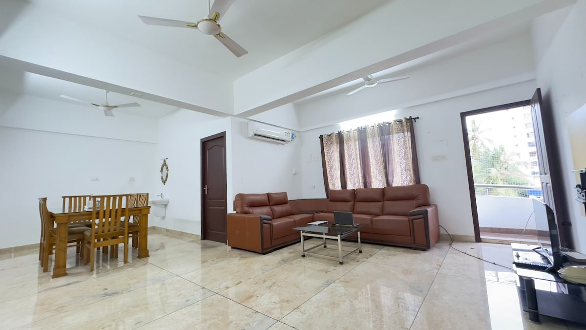 Stay in this clean and affordable 2BHK first-floor apartment in Akkulam, Thiruvananthapuram, ideal for families and professionals. Located in a quiet residential area near Lulu Mall and city attractions. The apartment offers one AC bedroom and one non-AC bedroom, free high-speed Wi-Fi, free covered parking, fans , a living area with sofa and dining table, and clean bathrooms. The kitchen includes a refrigerator, kettle, hob with Faber hood, and utensils. Self check-in via secure lockbox.