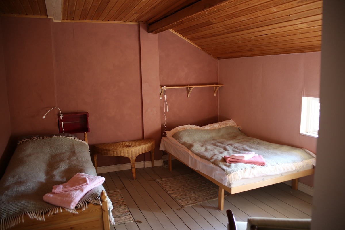 1860-tals hus på en jordbruksfastighet. Nära E4 o nära Luleå, Piteå. Promenadavstånd till restaurang, ca 3km till matvaruaffär Husdjur är tillåtna! Stuga med fullt utrustad Kök för matlagning, samt trädgårdsmöbler med utegrill, , sänglinne o handdukar finns och cyklar som ni kan få låna. Tillgång till bra cykelvägar och promenader Dusch och toalett. Lekplats finns nära stugan. Spjälsäng och barnmatstol. Badplatser finns ca 1-1,5mil, från boendet. 1 mil in till Piteå, och 4,5mil till Luleå.