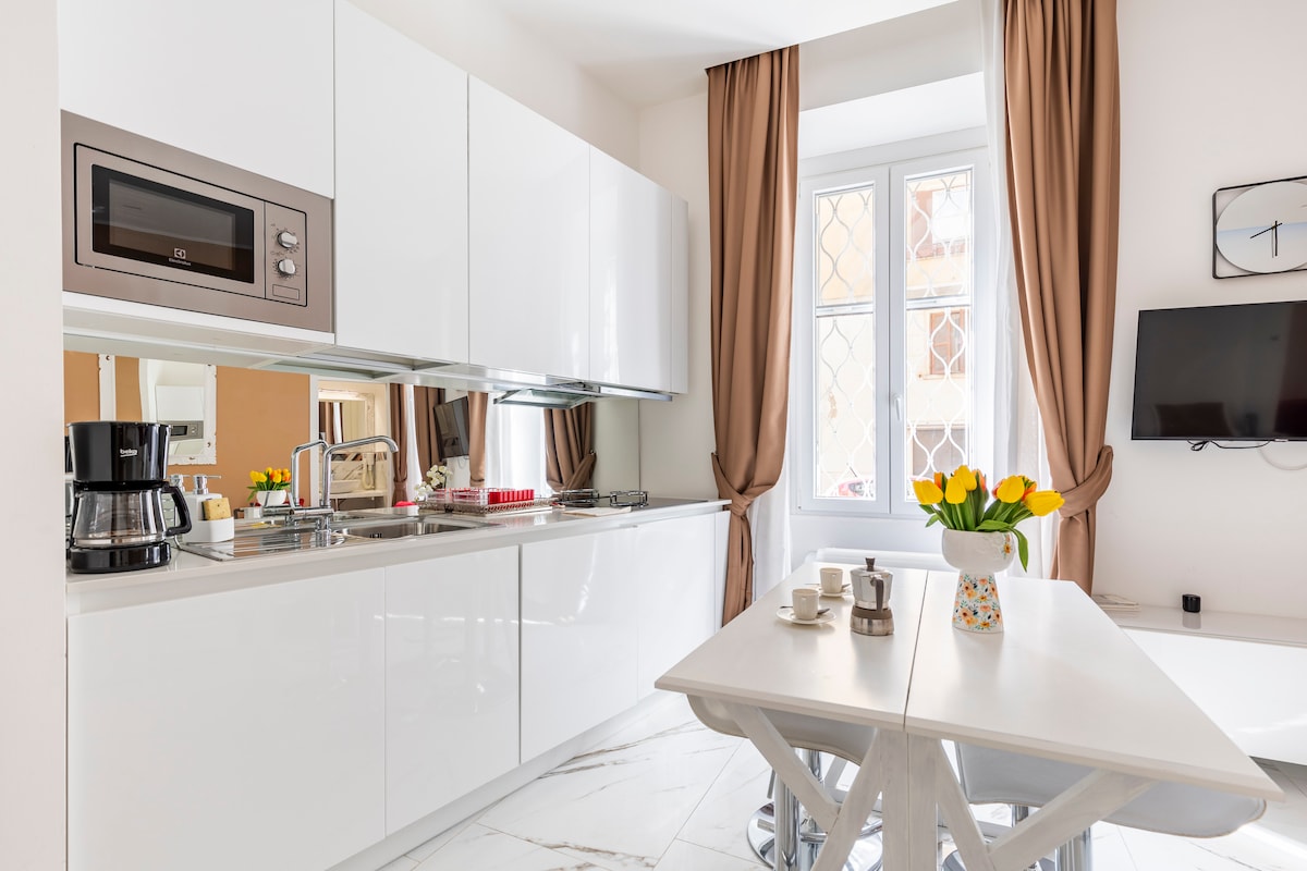 Leonardo Da Vinci Vatican Suite es un refinado apartamento de 50 m.c. que acaba de ser renovado. Tiene un dormitorio doble, baño, salón con sofá cama y cocina. El apartamento está situado en el corazón de Roma, a pocos metros del Vaticano, y todos los principales lugares turísticos son fácilmente accesibles a pie o en transporte público. La ubicación central, la comodidad de las habitaciones y el entorno tranquilo lo convierten en un hogar ideal para alojar cómodamente a 4 personas.