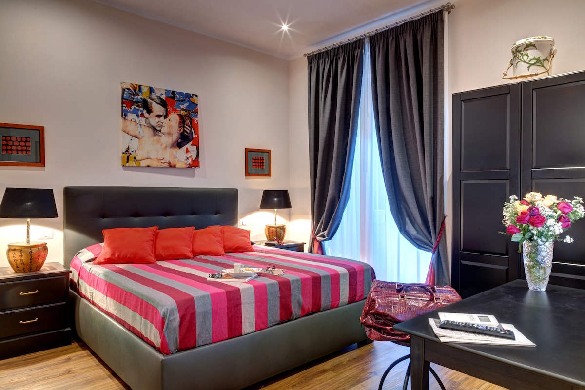 It's a gem... and it will be your NEST OF LOVE FEW METERS FROM TREVI'S FOUNTAIN AND SPANISH STEPS. Romantic and delightful suite in a typical Roman style with a delicious double bedroom, a small living room with sofa bed and TV. Bathroom with shower and full equipped kitchen. A true oasis of peace within the heart of historic center of Rome. UNLIMITED FREE WIFI, NETFLIX , ALEXA , AIR CONDITIONING, SOUNDPROOFED WINDOW, WASHING MACHINE AUTONOMOUS HEATING USER FRIENDLY COMPIUTER WORK PLACE