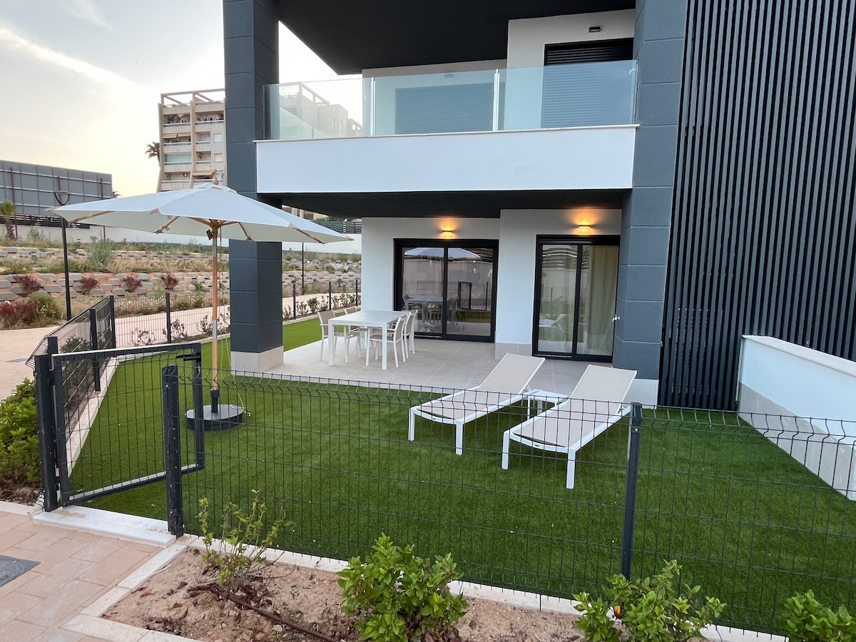 Apartamento soleado en la costa blanca,frente al mar,ideal para vacaciones cortas o temporadas completas.Playa de los náufragos y playa del acequion a 1 min andando. Totalmente amueblado,tiene lo necesario para no preocuparse por nada. Tenemos cuna y trona.Puertas y aseo preparados para minusválidos . Hay aparcamiento gratis.Servicios de farmacia,supermercados,restaurantes,parada de bus,taxi en el mismo edificio 😀 A 15 min andando el centro y la feria!no necesitas coche!!