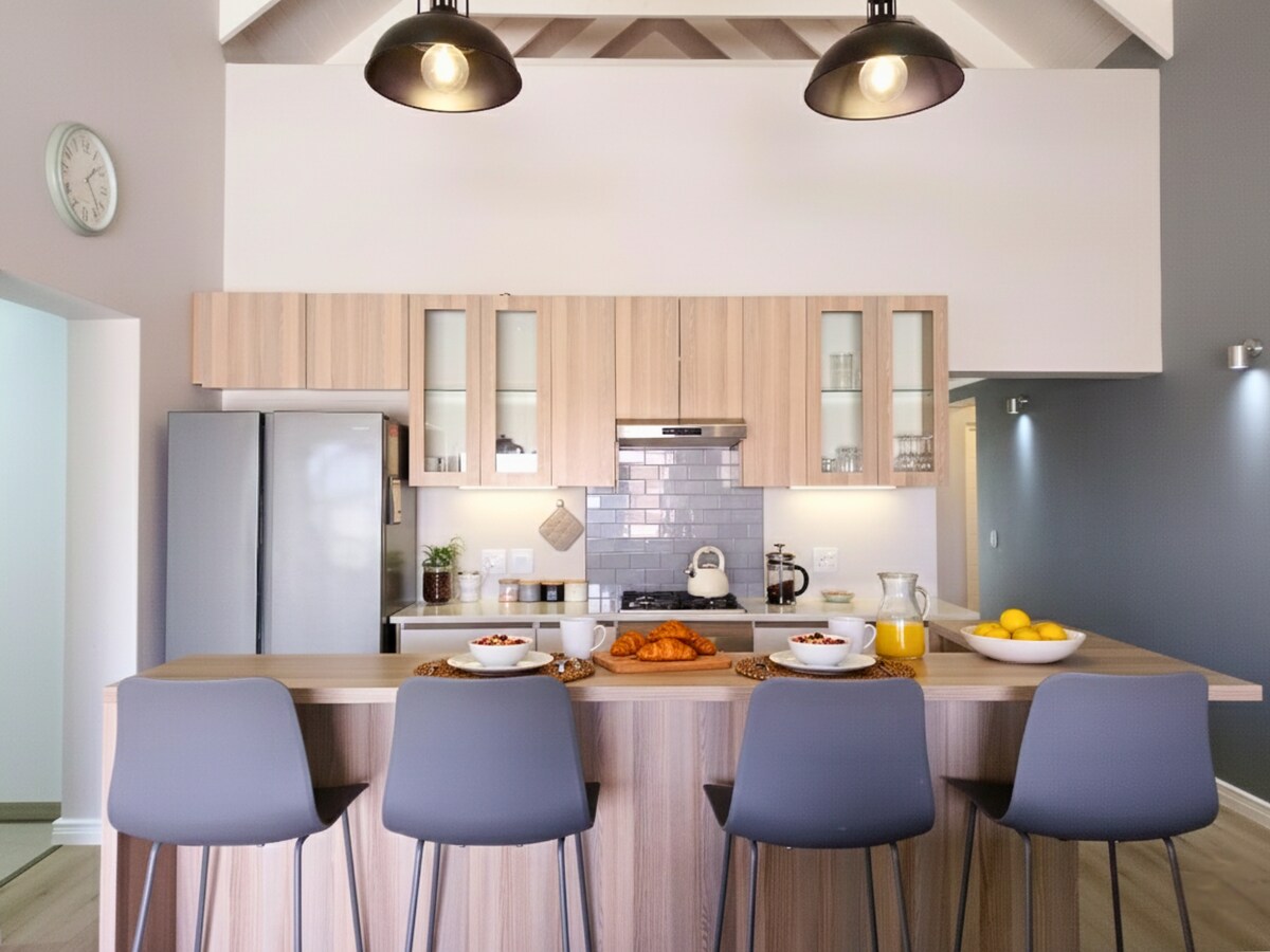 SIN DESCARGA DE CARGA💡 APTO PARA KITESURF🪁: ven y disfruta de tu escapada en esta cómoda, moderna, espaciosa y céntrica casa. La casa ofrece una chimenea interior y una zona de entretenimiento/braai interior que conduce a un gran patio trasero con una zona de fogata. Es apta para niños y bebés y, además, tus amigos peludos también son bienvenidos, ¡máximo 2 mascotas por 500 R por estancia! 🐶 Durante tu estancia, tendrás internet de fibra de 25 Mbps sin límites e ininterrumpido.