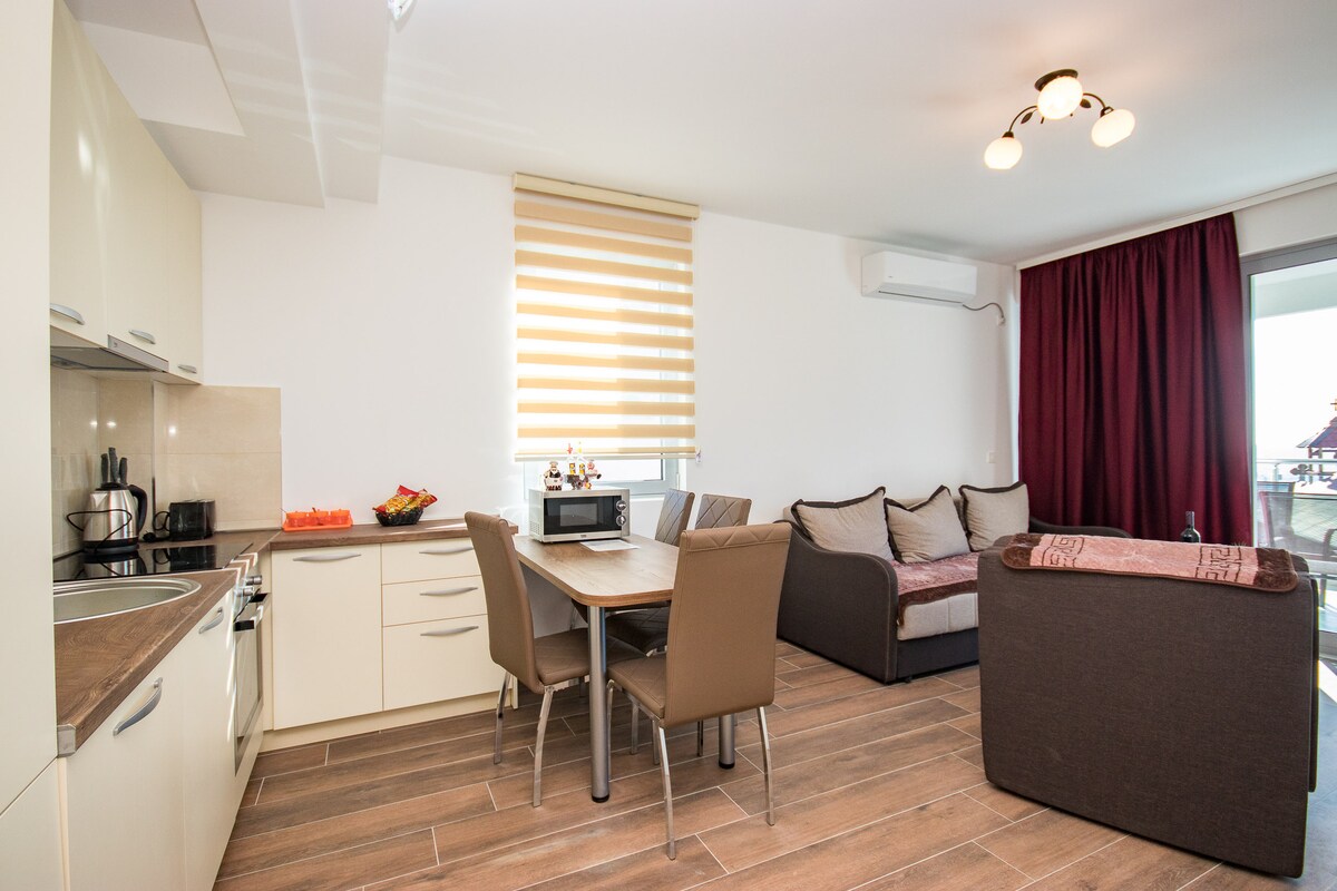 You will have a pleasant stay in this modern and newly decorated apartment, located in Bar, Susanj, with only 900 meters to the first beach , with sea views and terraces. This modern apartment with air conditioning, free WIFI has also a free parking spot. What makes this apartments special is Private Sauna and Jacuzzi-(on the Terasse)with a perfect sea view On the big terasse with modern furniture, so you can enjoy making your favorite dishes with friends or family Breakfast is available for €9