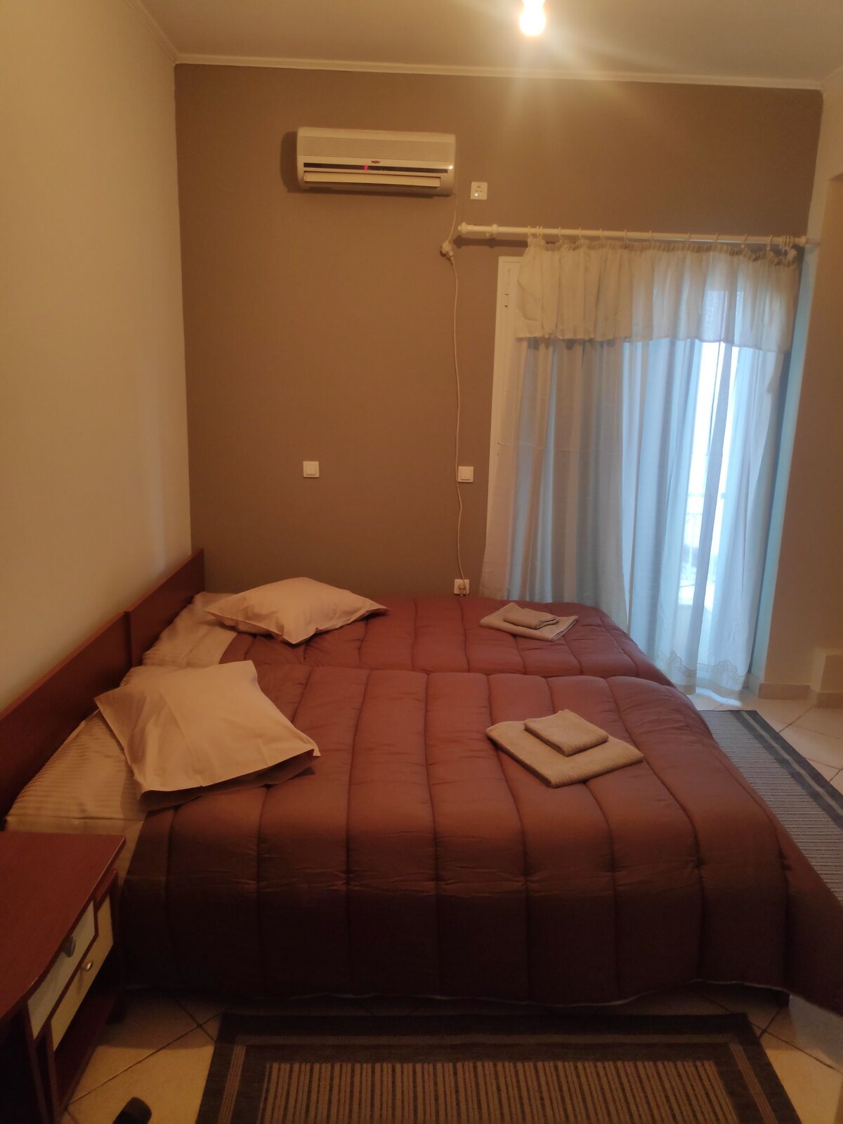 Disfrute de una experiencia de alojamiento en un estudio de un dormitorio totalmente equipado con balcón privado. El apartamento está situado en el centro de Agrinio (a 1 minuto a pie de la plaza principal) muy cerca de tiendas, restaurantes y lugares de ocio. Panadería y supermercado a 1 minuto a pie. También a 2 minutos se encuentra el aparcamiento municipal de Agrinio. Una ubicación ideal para los visitantes que desean explorar la ciudad y más.