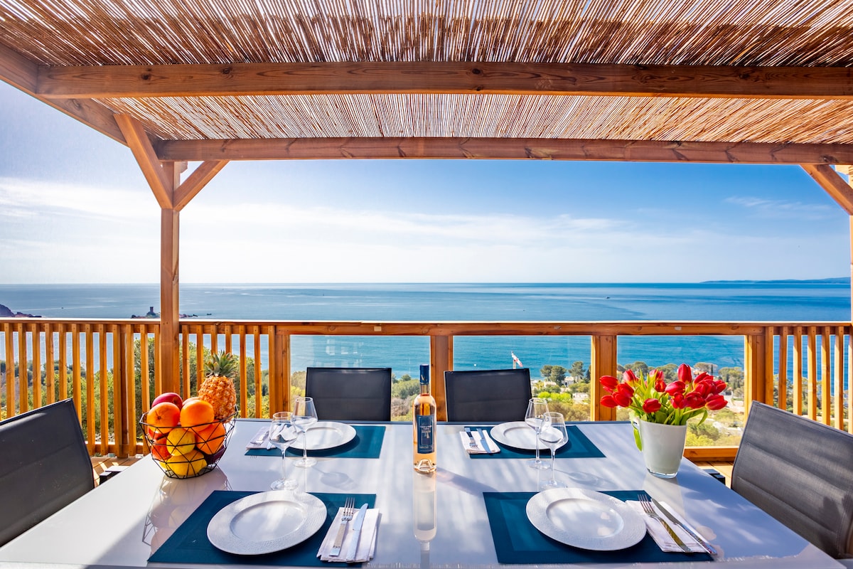 Un balcón frente al mar en las rocas rojas del Estérel, en la conocida carretera de la Corniche d'Or, entre Saint Raphael y Cannes Dos hermosas terrazas con vistas al mar, en medio de una exuberante vegetación, con vistas a las islas de Lérins de Cannes, los desayunos en medio de los pájaros son muy apreciables Es nuestro pequeño paraíso en un entorno excepcional