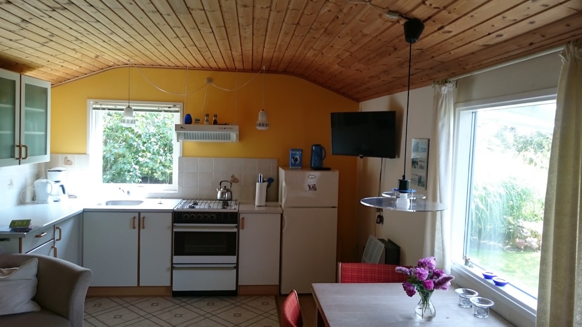 Bienvenido a Bettebo, un apartamento luminoso y acogedor en un entorno acogedor en Nibe, con vistas al Limfjord. Vives en una parte tranquila de la ciudad, a pocos pasos del fiordo, el bosque, la vida de la ciudad, las compras y para cenar. Tiene una entrada privada, su propia cocina/sala de estar y baño. Alquila el apartamento de 1 dormitorio para 2 huéspedes o con 2 dormitorios para 4 huéspedes. Para 6 huéspedes, hay una cama adicional en el sofá cama en la sala de estar. El apartamento tiene 60 m2 y hay acceso al jardín con terraza, barbacoa y muebles de exterior.