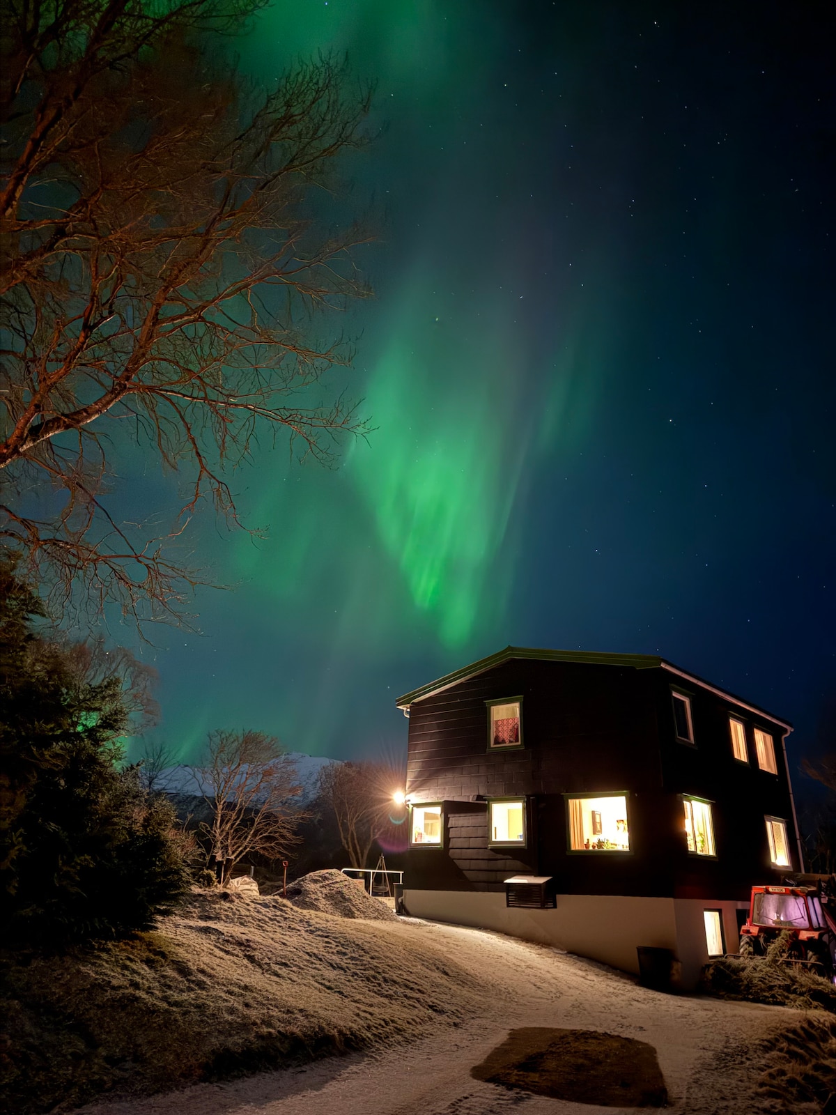 Lugar tranquilo a 15 metros de la propia costa costera. Disfruta de este alojamiento único y tranquilo, con un paseo por la sauna y un chapuzón en el mar o jacuzzi de leña. La canoa se puede usar libremente sujeto a que se utilicen chalecos salvavidas y el conocimiento del mar esté presente. Bajo tu propia responsabilidad. La bañera de hidromasaje es de leña y debe acordarse para quemarla. Se agrega un precio adicional por tiempo. La sauna es de leña y se puede usar libremente. El fuego lo realizan los huéspedes. Perfecto para ver las Luces del Norte, ya que hay poca contaminación lumínica.