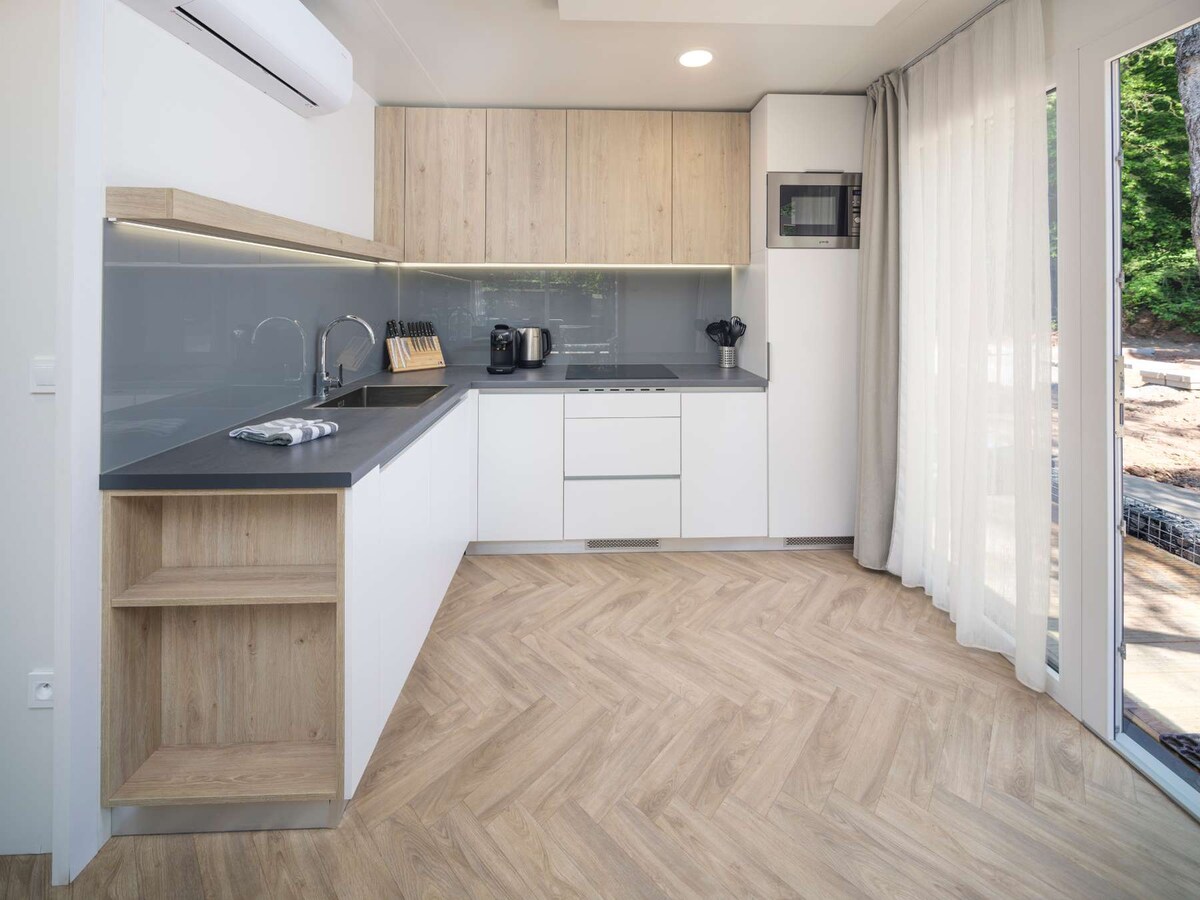 Nuestra nueva casa móvil, equipada con todas las comodidades y lujo. Con cabina de ducha extra espaciosa, lavavajillas incorporado y 3 dormitorios Pero la mayor parte del tiempo, por supuesto, pasarás afuera en el porche.