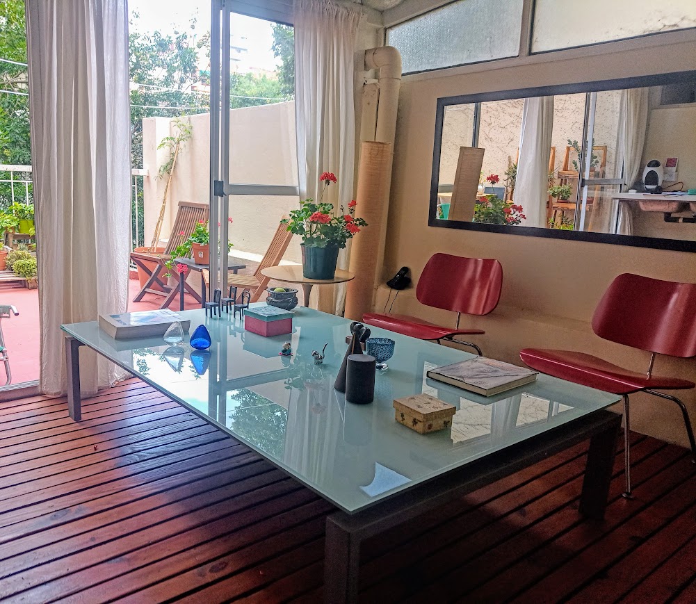 Tipo casa de mas de 130mts con gran terraza de 80mts y entrada independiente. Living comedor cocina muy amplio, habitaciones grandes, dos baños, todo luz natural en el barrio mas lindo de la ciudad, residencial, silencioso, verde. Muy bien comunicado y cerca de polos gastronómicos. Se ofrece y valora la tranquilidad, calidez, bienestar, armonía, conexión con la naturaleza y el silencio. El hospedaje se personaliza y equipa para cada necesidad (camas, comidas, traslados, experiencias y más).