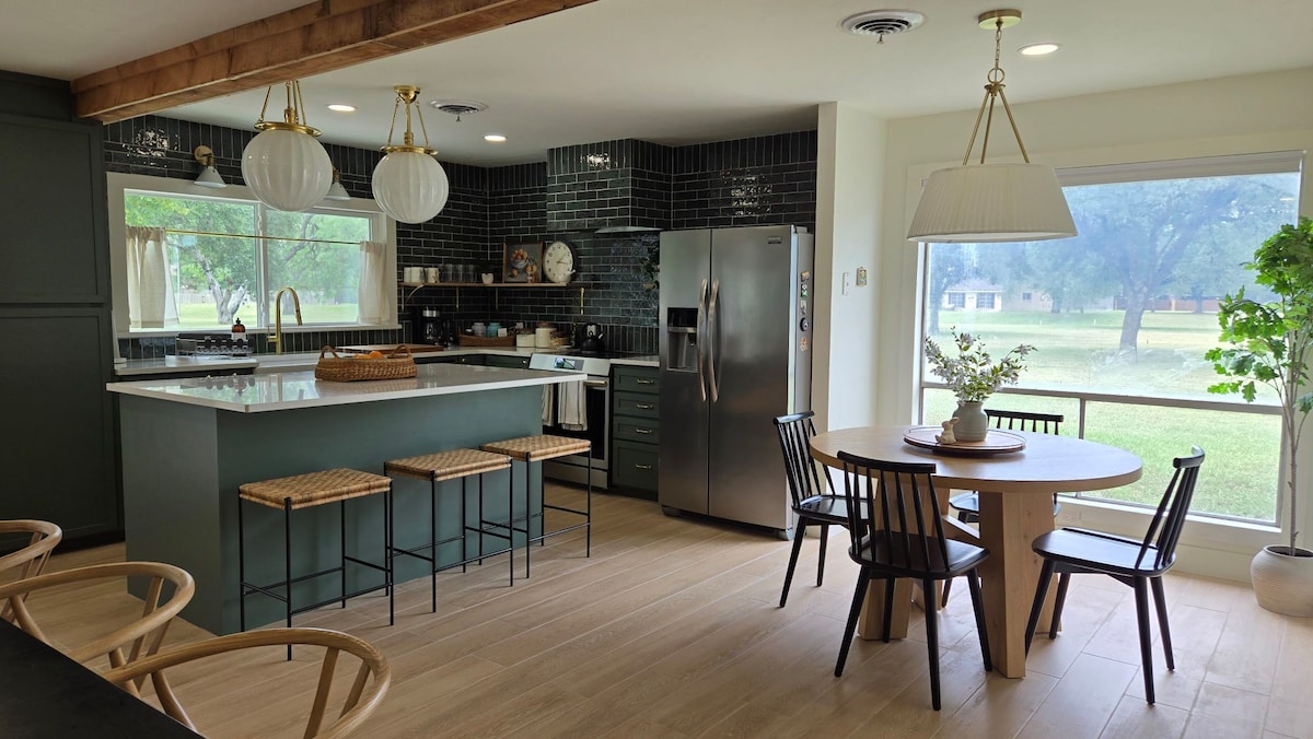 Nuestra casa de campo de 2 pisos se encuentra en un hermoso terreno en un tranquilo barrio boscoso a unos 12 minutos del centro de Victoria y a solo 5 minutos del lago Coleto y Raisin L Ranch. Está situado al final de un callejón sin salida, junto a una zona boscosa que alberga mucha vida silvestre. Nuestra casa inspirada en una granja, 3 dormitorios/2 baños, es muy acogedora y cómoda, con una cocina totalmente equipada, una gran sala de entretenimiento y lavandería completa. El patio trasero tiene una barbacoa y una fogata. Hay wifi disponible. ¡La casa de campo es encantadora, pero la vida silvestre es realmente increíble!