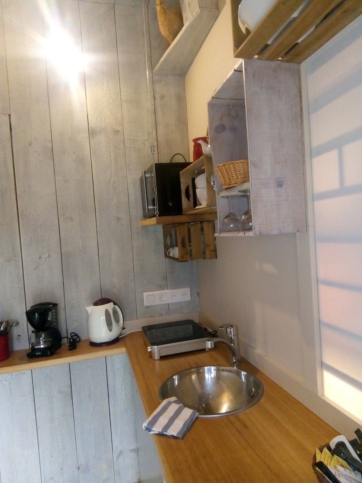 Se trata de una pequeña casa independiente en un entorno rural con vistas al mar a lo lejos (varios espacios al aire libre) Vivimos en una casa al lado, pero somos muy discretos. Un espacio de cocina está a su disposición en la planta baja de la casa, además de la zona de desayuno en el piso de arriba, donde encontrará algo de comer y beber para dos mañanas Conocemos bien la zona y podemos aconsejarle para paseos, baños en el río, lago y mar...