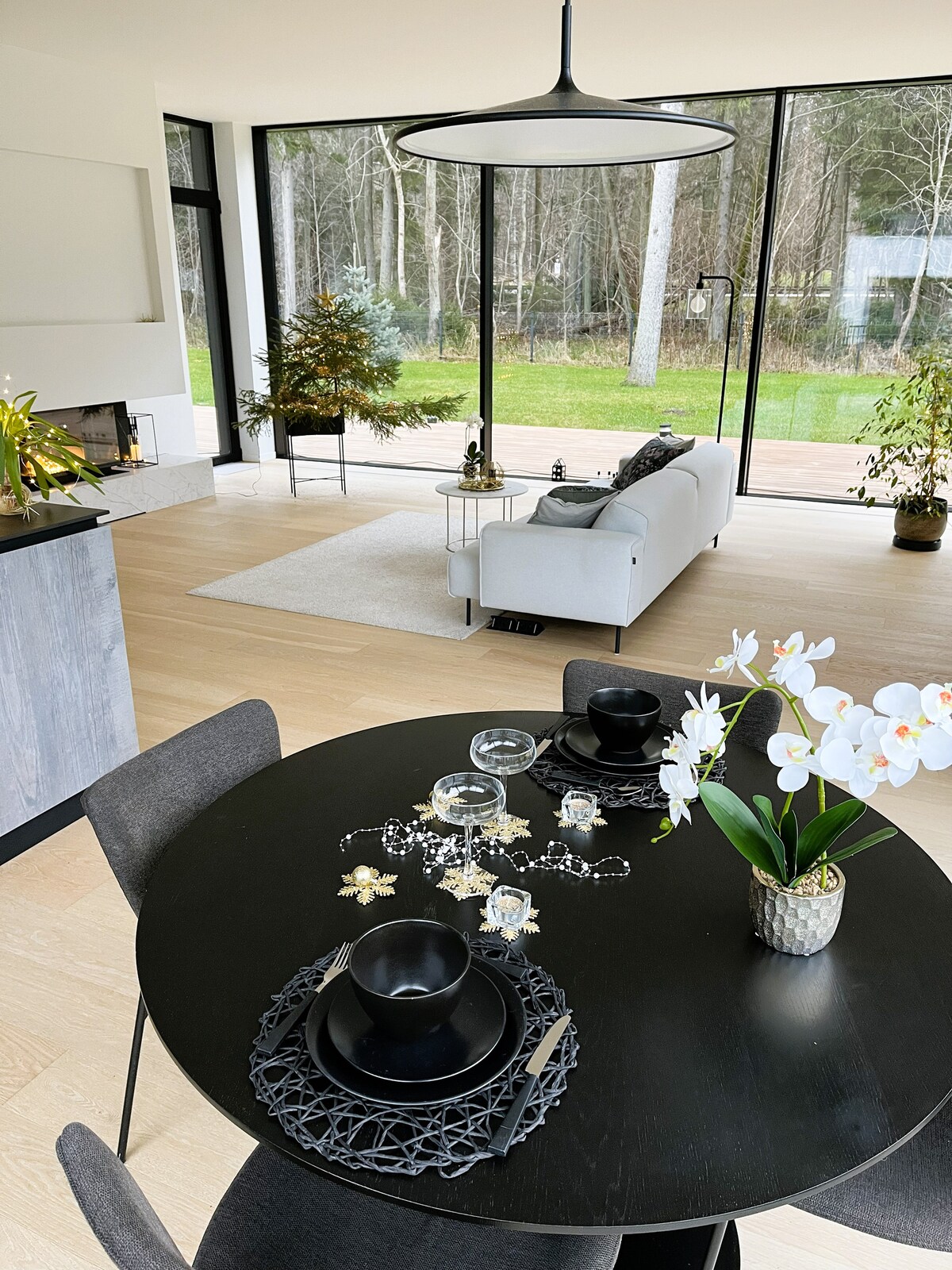 Spacious and minimalist glass villa in the suburbs of Tallinn (Viimsi), surrounded by the majestic private forest. Floor-to-ceiling triple glazed windows, automated heating and AC. En suite bedroom, guest bedroom/office, centrepiece fireplace, Miele/Jura/Bora, a Finnish sauna (logs provided), car port, security monitored gated premises. 20min from the ferry terminal, 22min from the airport. Close to all amenities. Long-term occupancy and hosting of special events available.