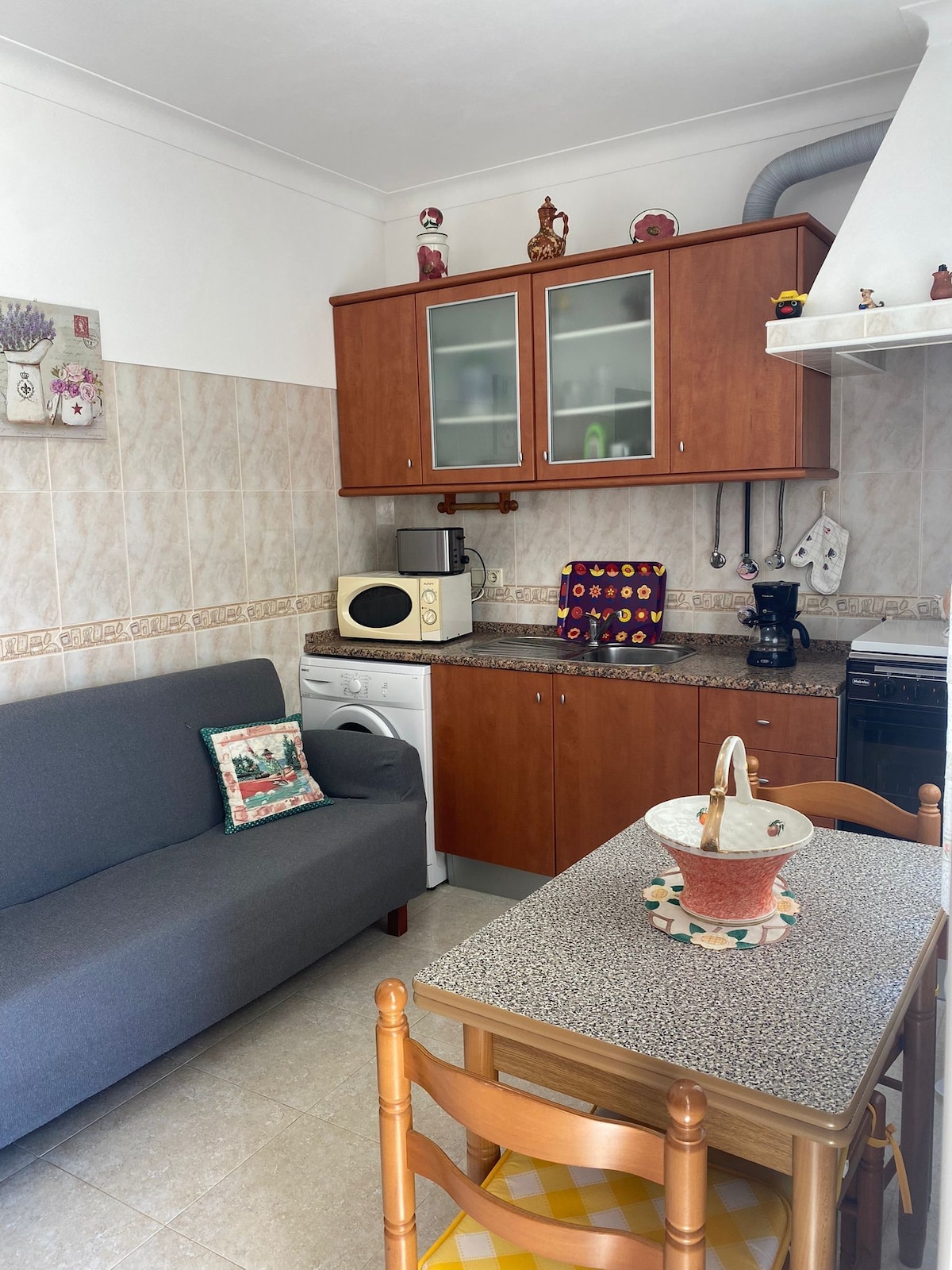 La casa consta de una planta baja con sala de estar y comedor y una cocina. El primer piso tiene dos dormitorios, uno con una cama doble y el otro con una cama más pequeña, suficiente para un adulto o dos niños y un inodoro con ducha. Finalmente tenemos la segunda planta con otro dormitorio doble, además de una cocina completa, un aseo con ducha y un pequeño balcón con mesa y sillas con vista directa y privilegiada a la playa. Alojamiento local N.29780/AL