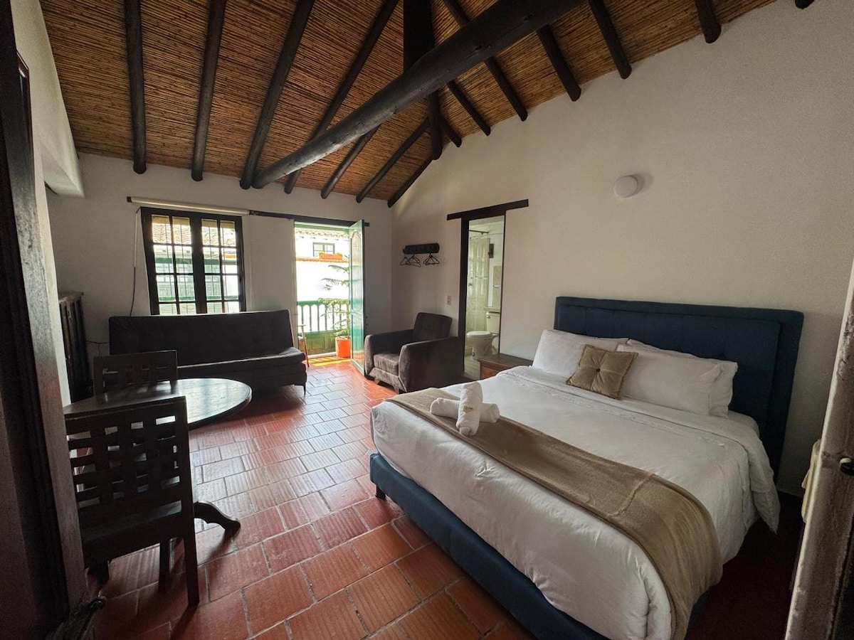 Vive una experiencia única en nuestra Junior Suite en Casa Villa Bonita, un acogedor hotel campestre en Villa de Leyva. Disfruta de la comodidad de una cama doble, televisión, wifi, baño privado y un acogedor sofá para relajarte. Lo mejor de todo es su balcón con una vista espectacular a la montaña, perfecto para desconectarte y disfrutar de la naturaleza. Además, somos pet friendly, para que puedas compartir esta experiencia con tu mascota. ¡Un lugar ideal para el descanso y la tranquilidad.