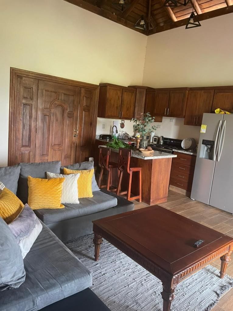 Escápate a Cassalena Ecolodge, un santuario de montaña en Jarabacoa. Relájate en tu jacuzzi privado climatizado o cocina en la hermosa cocina al aire libre y el comedor. Este refugio exclusivo cuenta con una sala de estar de concepto abierto que fluye hacia la naturaleza, una suite principal con una cama tamaño king y un cómodo sofá cama para huéspedes adicionales. Con aire acondicionado, 3 televisores inteligentes y conexión Wi-Fi rápida para el trabajo remoto, es el equilibrio perfecto entre lujo y tranquilidad para parejas o familias pequeñas que buscan una escapada única.