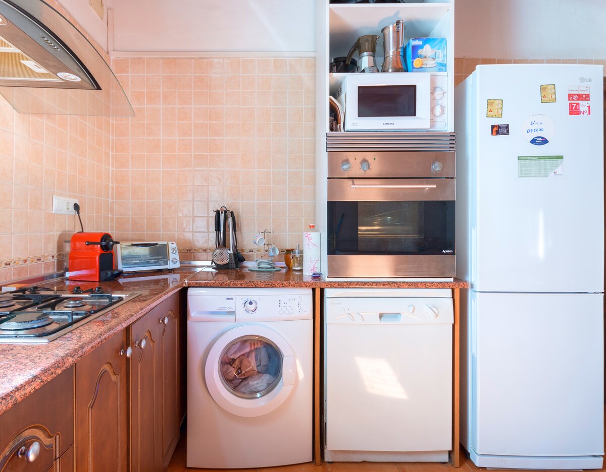 Bute rasite du jaukius miegamuosius ir svetainę sujungtą su pilnai įrengta virtuve. Vieną vonios kambarį. Bute rasite viską, ko reikia. jūsų komfortiškam poilsiui. Vakarais galėsite atsipalaiduoti privačioje terasoje esančioje ant stogo, nuo kur atsiveria graži panorama. Terasa yra puiki vieta ne tik atsipalaiduoti vakarais, bet ir pasimėgauti saulės spinduliais. Pasimėgavę saule galėsite atsigaivinti bendrijos baseine, esančiame vos už kelių šimtų metrų nuo apartamentų.