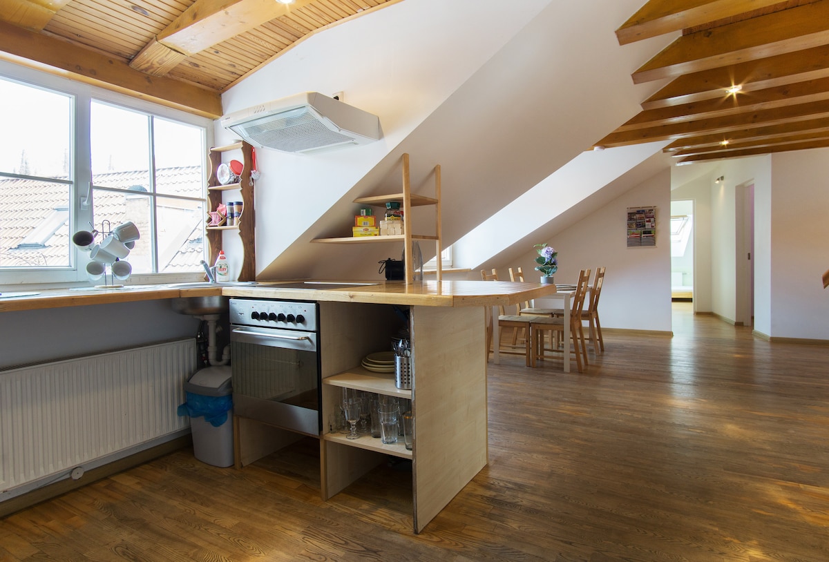 El loft con sauna es un exclusivo departamento loft de dos pisos ubicado en un estilo escandinavo. Área: 35 o 42 m2 Número de huéspedes: 1–4 Sauna para 2 personas Camas: 1 cama doble (140x200 cm), 1 litera (90x200 cm) Cocina pequeña, platos Cafetera Nespresso Wifi gratuito Televisión satelital Aire acondicionado Llegada autónoma Damos la bienvenida con animales (hasta 10 kg, 10 euros/n, máximo 2 animales) Plaza de aparcamiento (10 euros/n., se requiere confirmación)