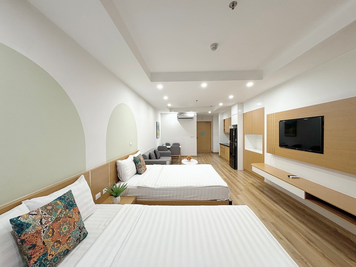 ¡Te damos la bienvenida a tu elegante escapada junto al mar en el corazón de Quy Nhon! Este estudio de diseño único es perfecto para viajeros solos o parejas que buscan comodidad y conveniencia en TMS Quy Nhon - Hupasearest. 🛋️ Lo que te encantará: • Una cómoda cama tamaño king con sábanas limpias y almohadas suaves. • Televisión inteligente, wifi de alta velocidad perfecto para trabajar o entretenerse • Cocina pequeña totalmente equipada con nevera, hervidor y utensilios de cocina básicos • Baño privado con agua caliente y artículos de aseo gratuitos • Balcón con vista al mar.
