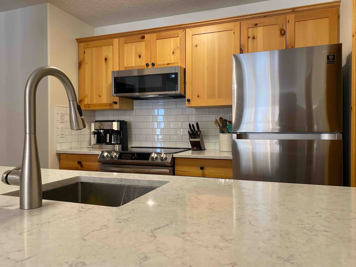 Why stay in a hotel when you can stay in a beautiful 2br, 2ba ground floor unit at Sun Peaks BC. This unit looks into the shared courtyard with a play area for kids right outside. Crystal forest is steps away from the the village and a short walk to the chairlift. This home has been fully renovated in 2021 and is ready for guests (mid-century modern/lodge style). Renovations include: new counters, flooring, paint, furniture and installation of new hot tub and all new appliances.