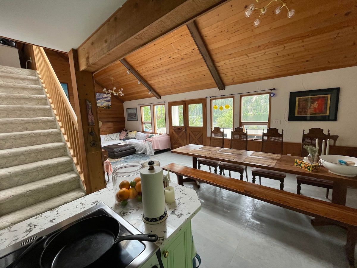 Artfully crafted cabin beside a small pond in the forest. Wake up to soft forest light and singing birds. The enclosed porch features huge windows that can be fully opened for an outside feel. The property is lakefront and guests have access to a small non motor lake where they can paddle, float and swim. The property is 20 minutes from Sun Peaks, surrounded by hiking trails, lakes, golf courses and lots of outdoor activities.