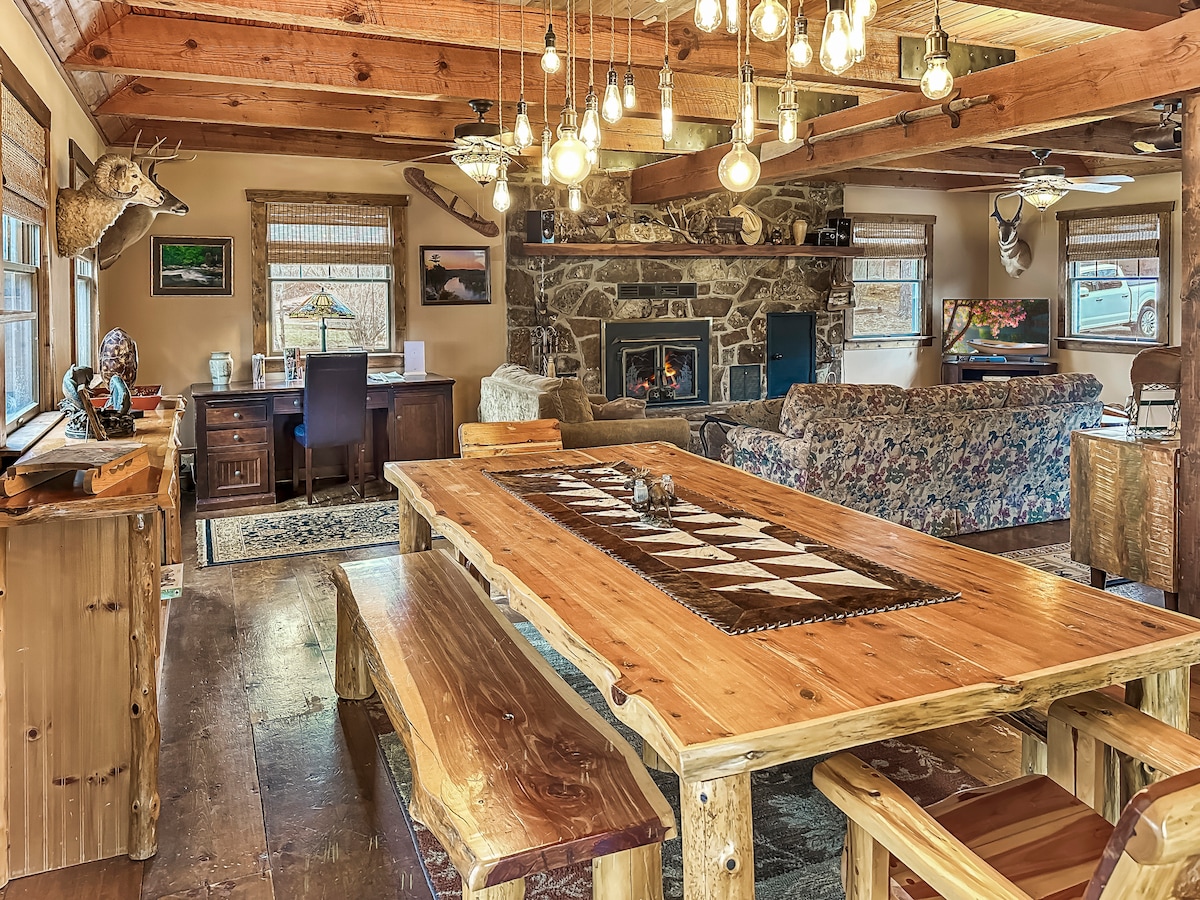 Resting on the banks of the White River, this quiet & peaceful cabin offers world renown trout fishing, mountain views, & gorgeous sunsets! Located just minutes from the charming city of Mountain View, spend your evenings listening to locals playing music on the square or visiting the Ozark Folk Center. Come sit for hours on the covered porches or launch your boat less than 1/4 mile down the road! This Ozarks cabin offers the perfect place to unwind and experience the charm of Mountain View!