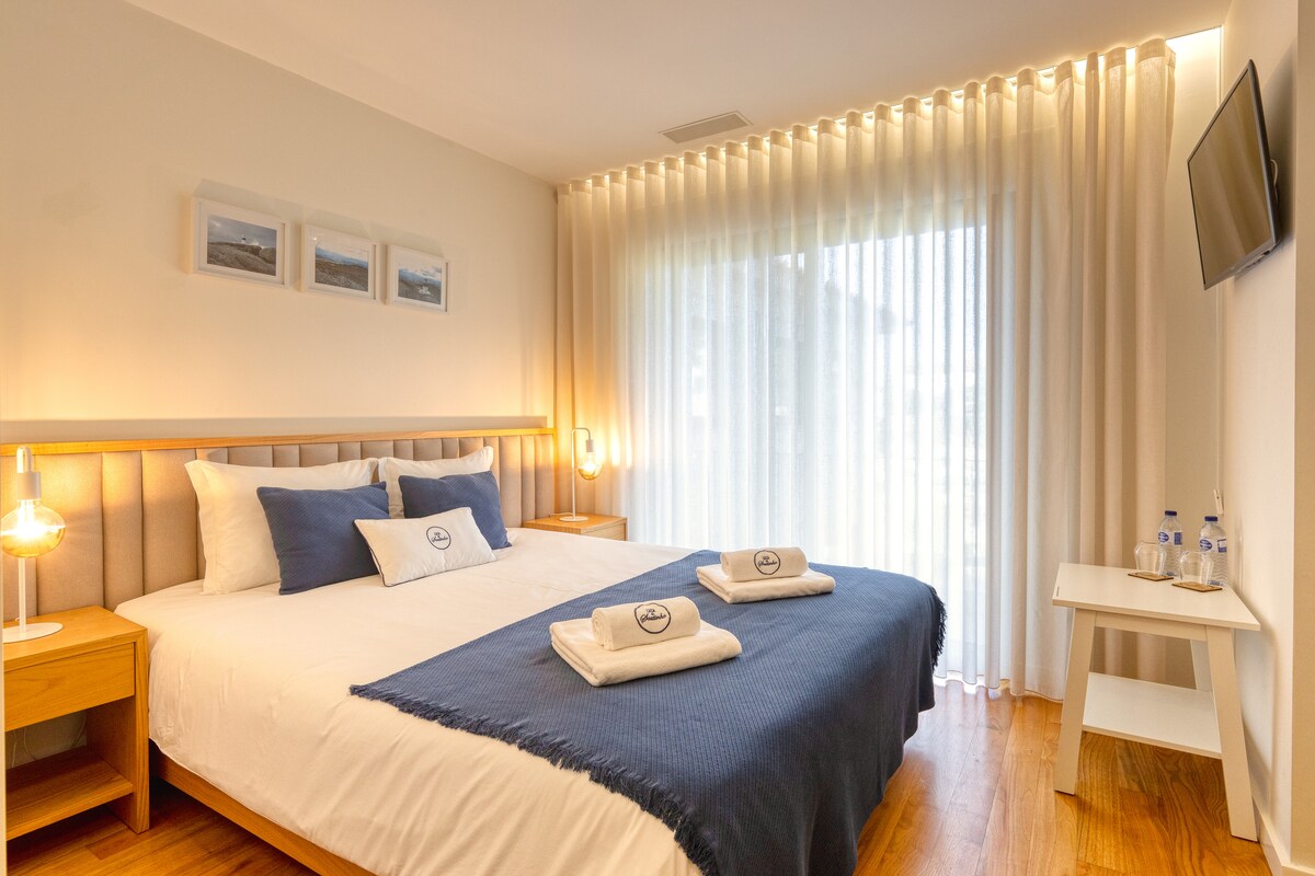 Quarto acolhedor e totalmente preparado para receber casais ou viajantes que procuram conforto e tranquilidade durante a sua estadia. Destaca-se pelo ambiente luminoso, decoração cuidada e mobiliário confortável, criando um espaço ideal para descansar após um dia de passeio ou trabalho.