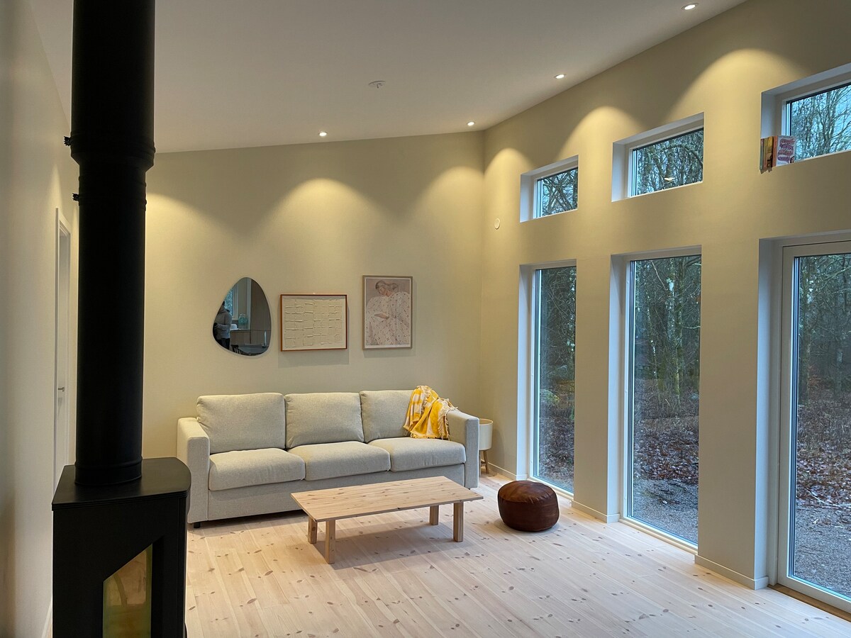 This Swedish country side house is a retreat to be in. It is the perfect place to relax close to nature. It has a wooden stove, nice open kitchen, living room and bedroom with glas doors that open to a big terras with private garden. The bedroom has a big double bed and a possibility for a child bed. There is a very comfortable bathroom with bath. Beautiful forests, lakes, playground, bakery (open on fridays), and regenerative veggie farm are just around the corner. PN: Limited public transport