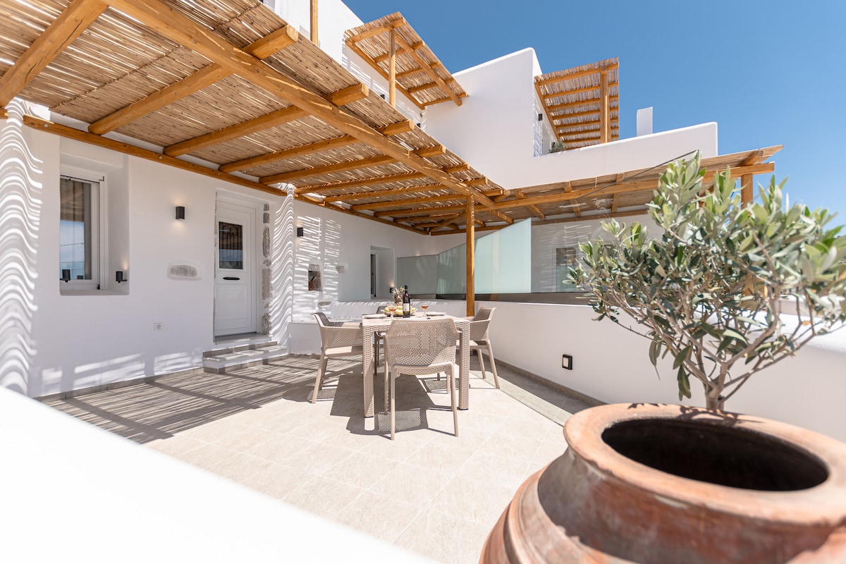 Villa Arismari is located on a serene hillside, surrounded by natural boulders, overlooking the beautiful coast of Orkos. We have a breathtaking panoramic view of the Aegean Sea and our neighboring island of Paros. We are situated between the main beach and smaller bays of Orkos. While enjoying the view that Villa Arismari offers prepare to take your most incredible selfies . Villa Arismari is a beautifully designed villa of Cycladic minimal architecture.