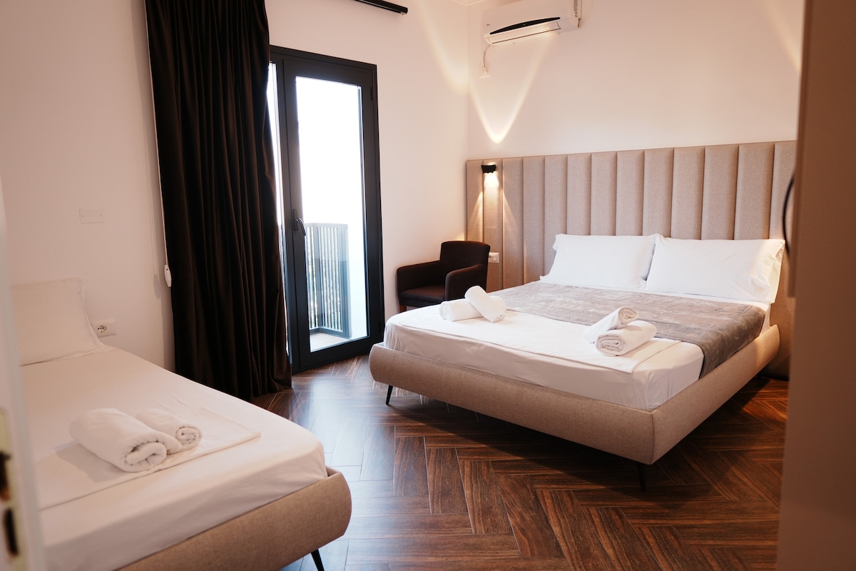 ¡Despiértate con impresionantes vistas al mar en el corazón del animado paseo marítimo de Vlora! Nuestras luminosas y modernas habitaciones con vistas al mar están a solo unos pasos de la playa, los restaurantes, los bares y todo lo que necesitas para relajarte. Disfruta de tu café matutino en el balcón con vistas al mar Jónico o da un paseo al atardecer por el paseo marítimo. Cada habitación cuenta con una cómoda cama, aire acondicionado, wifi rápido y un baño privado, perfecto para parejas, viajeros solitarios o nómadas digitales que buscan relajarse junto al mar.