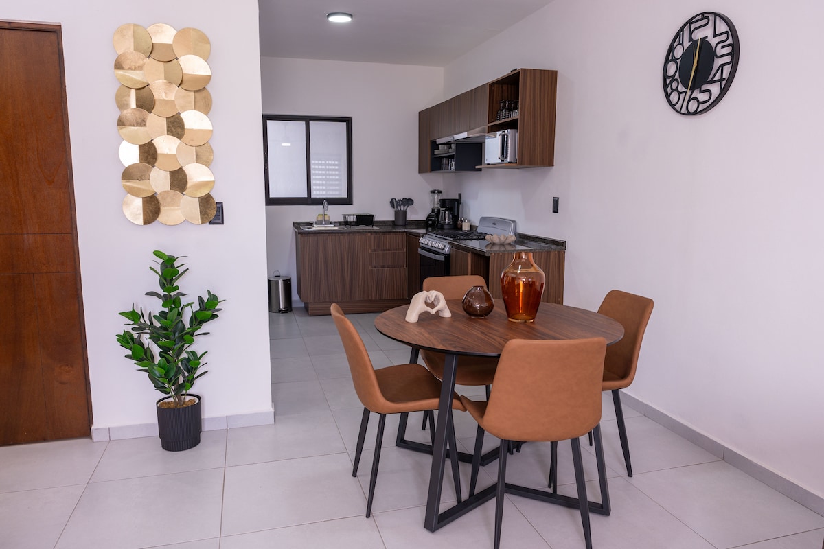 Bienvenido a nuestro tranquilo departamento ubicado en 3ra planta. Ya sea que nos visites por trabajo, vacaciones o evento, este departamento de 3 recamaras ofrece la combinación perfecta entre comodidad y autenticidad. A 10 min. del centro y de áreas comerciales como Zentralia, Sendera y los mejores restaurantes y bares. Su excelente ubicación permite estar cerca de todo. El lugar está listo para recibir hasta 8 Personas. Ideal para un fin conociendo la ciudad, un evento, o negocios .