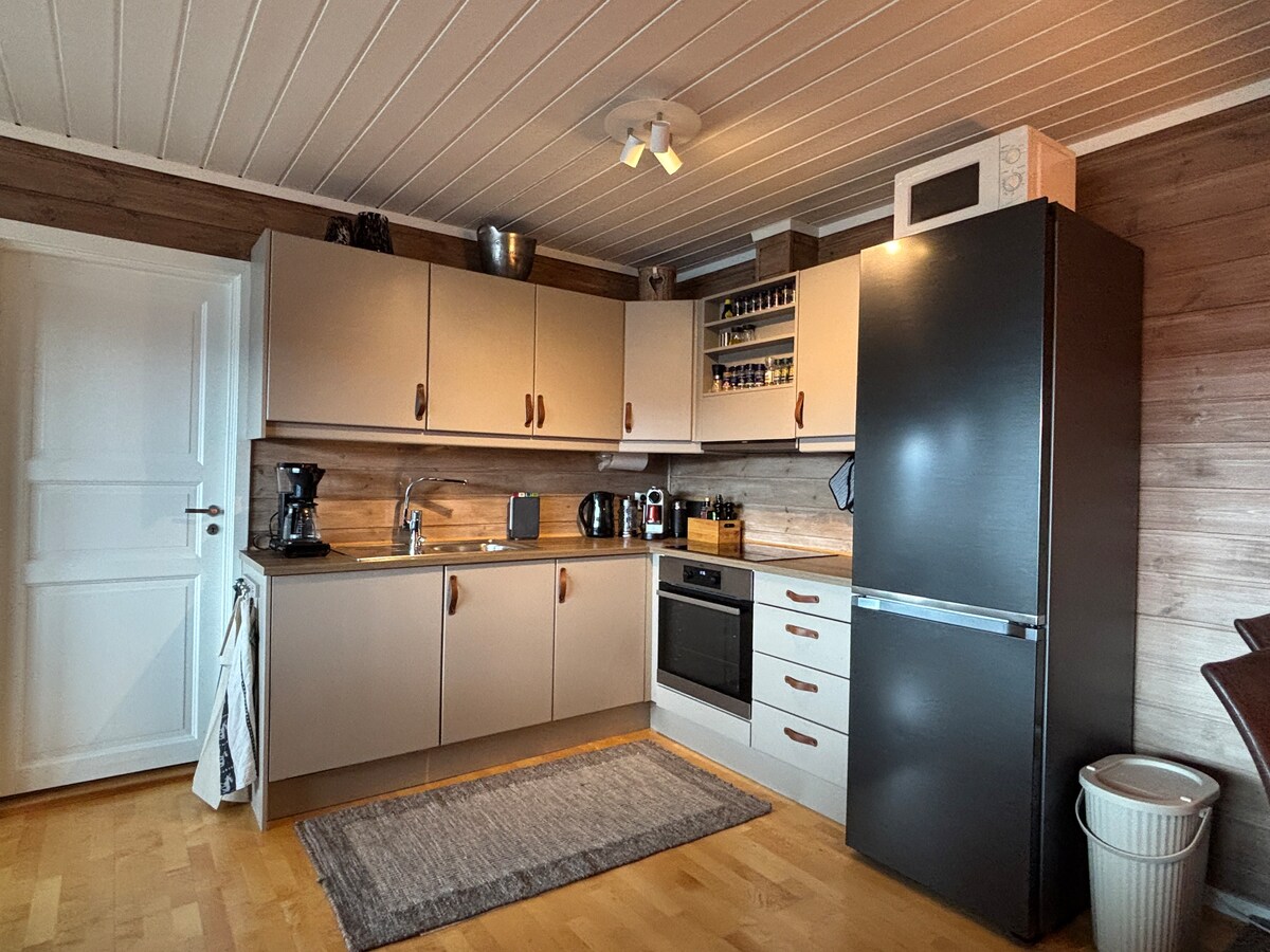 Te damos la bienvenida a un gran resort de lujo en las montañas. Ubicación atractiva para hacer senderismo y una gran variedad de deportes. A 10 minutos del centro de Voss. • Entrada/salida de esquí • WIFI de alta velocidad y TV. • Conduce hasta la puerta • 7 camas/3 dormitorios - 2 baños con azulejos, ducha tropical, sauna. • Calefacción en todos los pisos, como dormitorios. • Cocina de madera • Cocina totalmente equipada con horno, micro, inducción. lavavajillas, nevera y congelador. • Terraza y balcón cubiertos • ¡Vista panorámica! - Sol desde la mañana hasta tarde por la noche.