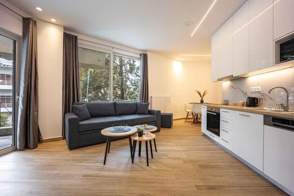 En una antigua mansión protegida (1900) tenemos un estudio completamente renovado de 32 m² con vistas al jardín, entrada independiente con aparcamiento. El espacio (Covid-safe*) consta de un salón con cocina totalmente equipada, un sofá que se convierte en una cama para 1 persona, un baño y un dormitorio con una cama doble grande. Todo el espacio dispone de aire acondicionado/calefacción, agua caliente, alarma y wifi. ¡Estamos a solo 6 minutos del centro de Halandri, en un barrio muy tranquilo! *Ver foto