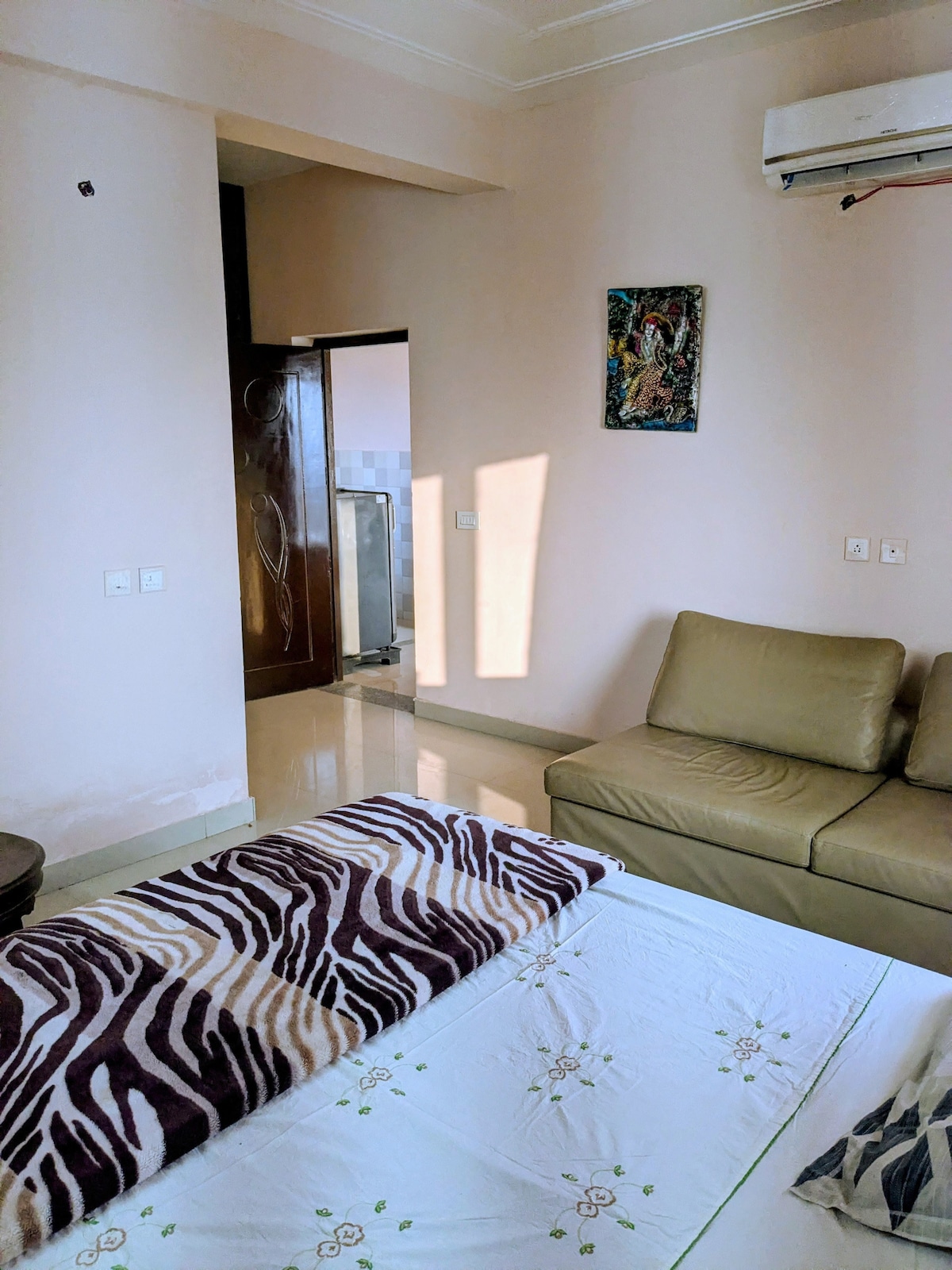 Hare Krishna 🙏 Welcome to our peaceful studio apartment in Vrindavan, just 2 minutes from the renowned ISKCON temple, and 5 minutes from both Prem Mandir and Premanand Ji's Ashram, where you can see Premanand Ji right outside. Nestled in a serene spot amidst the bustling city, our studio offers a tranquil retreat, perfect for relaxing after exploring the spiritual landmarks nearby.