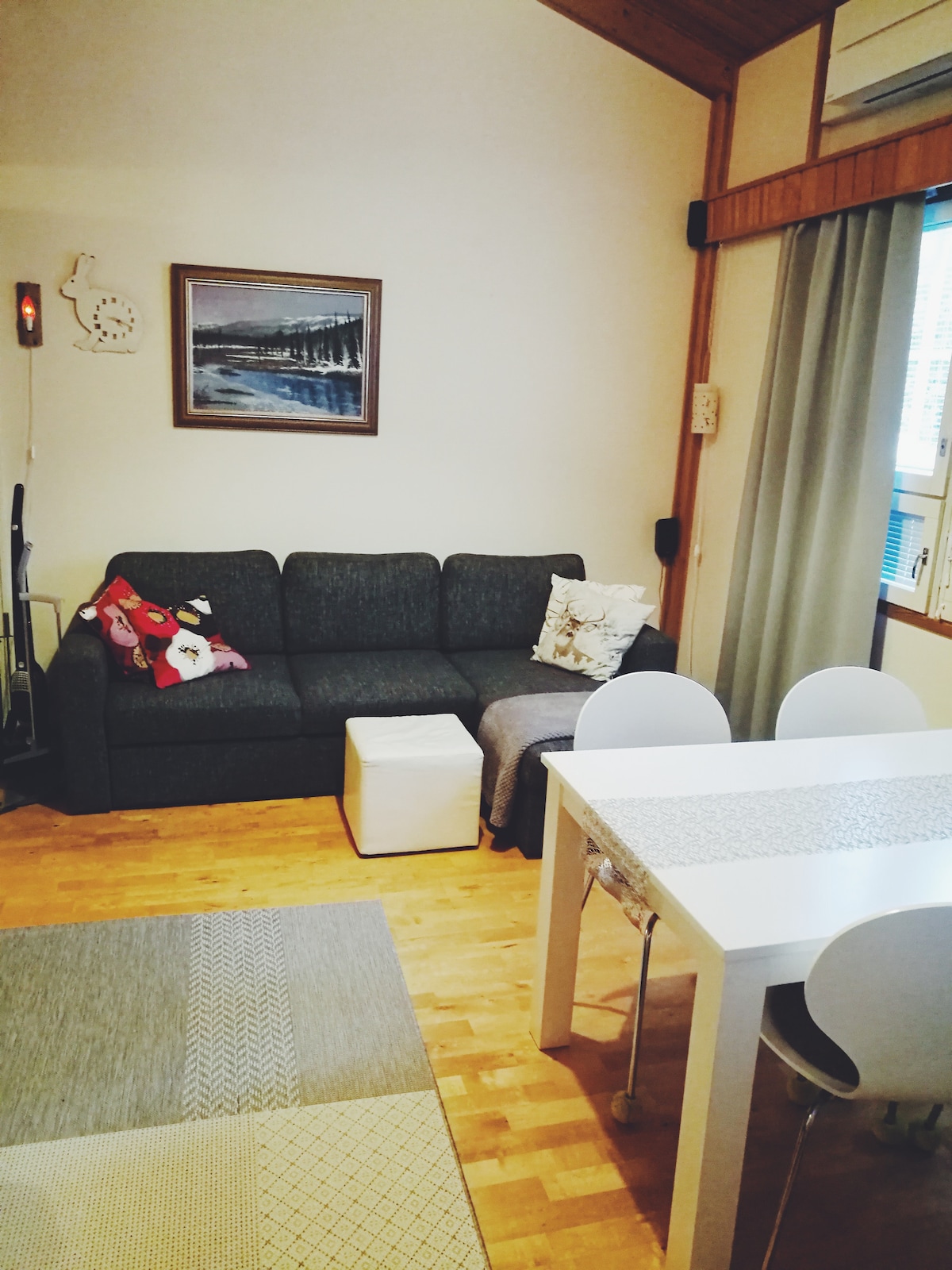 Apartamento acogedor y limpio con entrada privada. Cocina totalmente equipada. Se puede calentar la sauna a diario, refrescarse en la terraza protegida, hacer barbacoas (a gas) y hay una chimenea. Camas hechas en los dormitorios (160 cm, 120 cm). Sofá cama en el salón (140 cm). Camas de viaje para niños pequeños. Se admiten mascotas (recuerde informar al hacer la reserva). La ropa de cama, las toallas y la limpieza final están incluidas en el precio. El apartamento está a unos tres kilómetros del centro de Kajaani en dirección al aeropuerto.