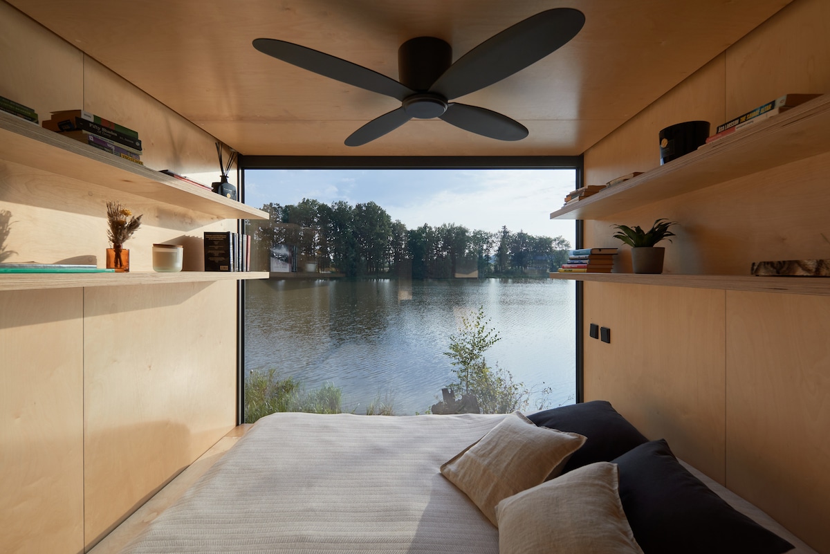 KEBIN is a luxurious residential container set among the trees by the Hejlovský pond. Its advantages include high comfort, a passion for design, and a love of nature. It is designed for maximum comfort, harmony with nature, and practical use. In a small space, it offers everything you need for active or passive relaxation. KEBIN is characterized by unusually large glass surfaces that blend the interior with the exterior. KEBIN is an abbreviation meaning “a place with a soul.”