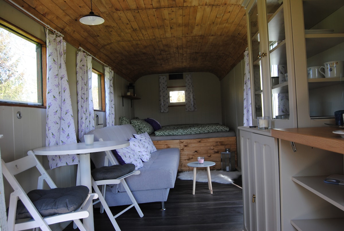 Durante su estancia en este lugar único, estará rodeado de los sonidos de la naturaleza. Una estancia poco convencional en una caravana recientemente renovada. En un lugar solitario en un prado cerca del bosque. Le espera una tranquilidad absoluta, silencio, privacidad, naturaleza hermosa, un lugar maravilloso para relajarse. Nuestra caravana ofrece alojamiento para un máximo de cuatro personas. Es espaciosa, limpia y está amueblada de manera funcional. No estamos conectados a la electricidad, el agua potable y el agua para uso doméstico se suministran regularmente en barriles. Afuera le espera una hermosa letrina y una ducha solar.