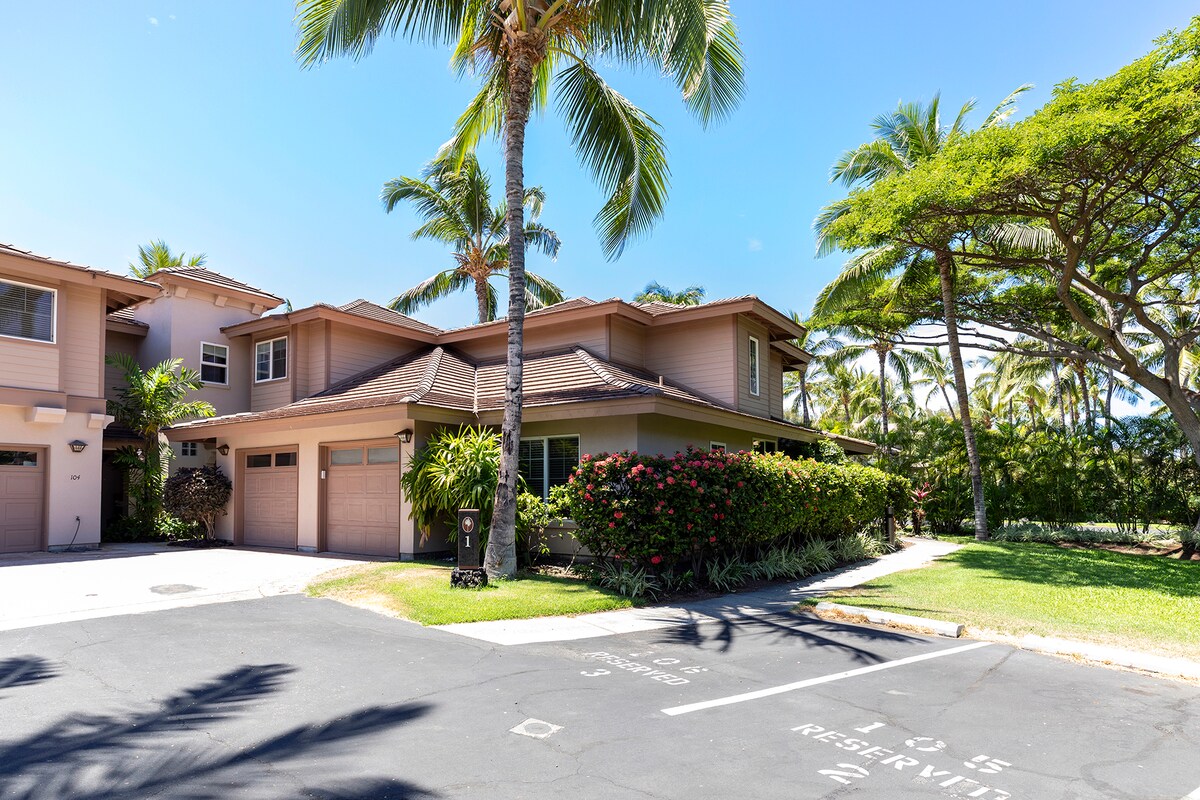 Disfruta de tu estancia en este tranquilo apartamento de 1 dormitorio y 1 baño en la planta baja, remodelado en 2023, en una de las mejores ubicaciones de Waikoloa Beach Resort. * Exuberante paisaje tropical con estanques y cascadas. * Junto a piscina, cancha de tenis, barbacoa y gimnasio. * A poca distancia a pie de la playa, tiendas, restaurantes, entretenimiento y Grand Hilton. * Wifi rápido y gratuito. Aire acondicionado central. Lavadora y secadora. * Televisores con cable Spectrum y transmisión Roku. * Plaza de aparcamiento privada a 50 yardas de la puerta principal.